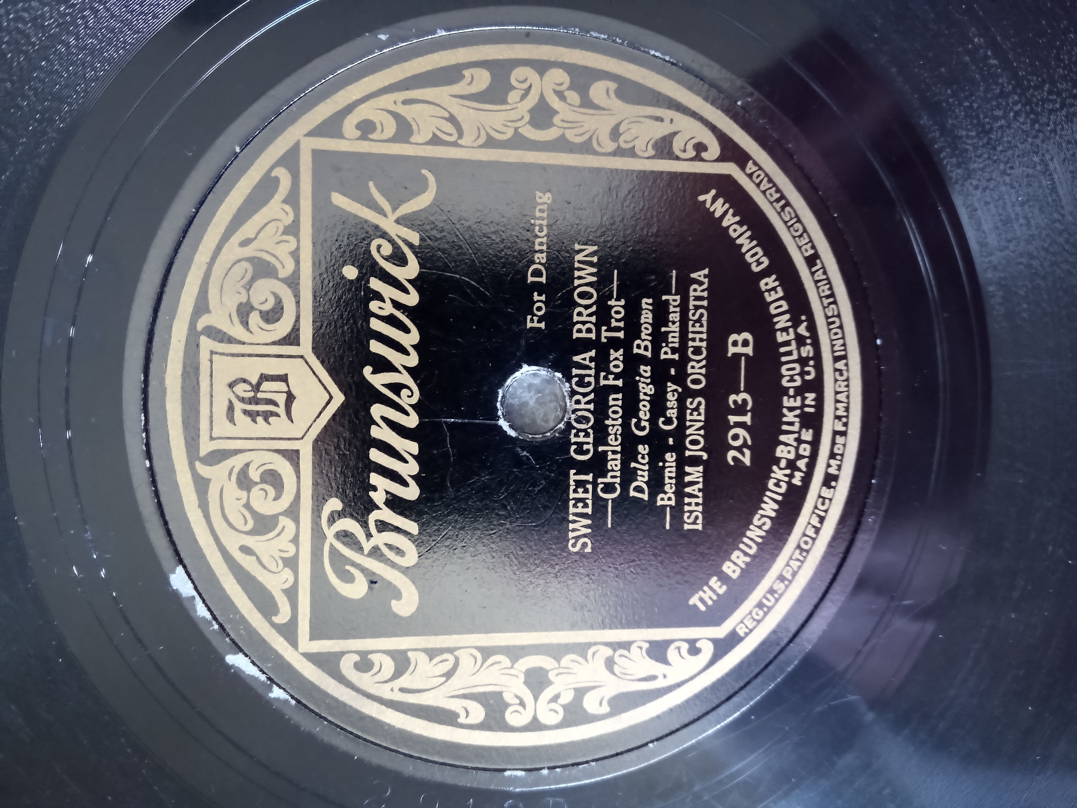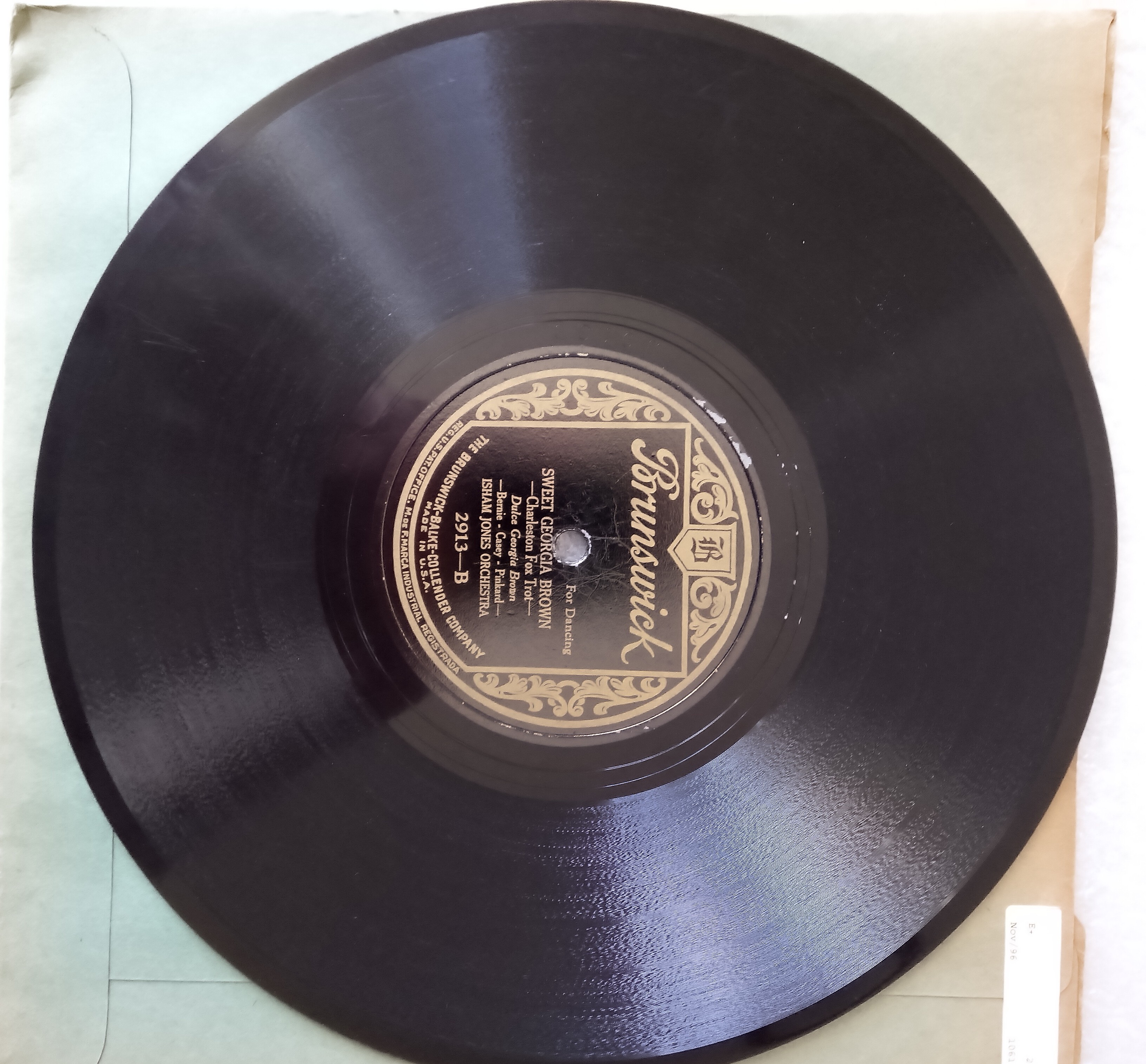 Brunswick 2913 - Sweet Georgia Brown - Isham Jones Orchestra / Collegiate - Carl Fenton's Orchestra (Both electric) E to E+ $20