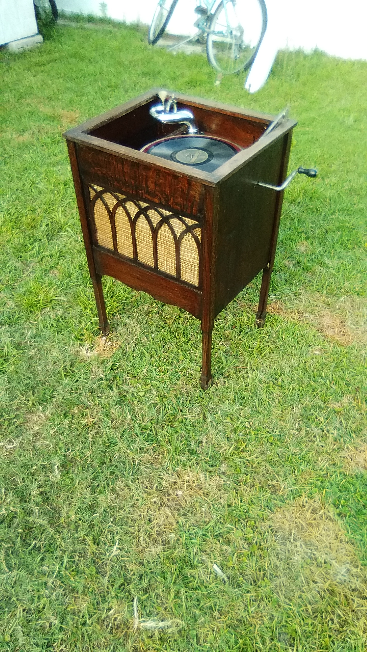 It does still play. The soundbox was on my VV-XIV for awhile and picked up a buzz so I need to adjust it. An older style open face soundbox would be interesting to swap into this. A lot of the wood screws out of the lid are also missing so I'm looking to get more cabinet hardware, and finish the machine up properly.