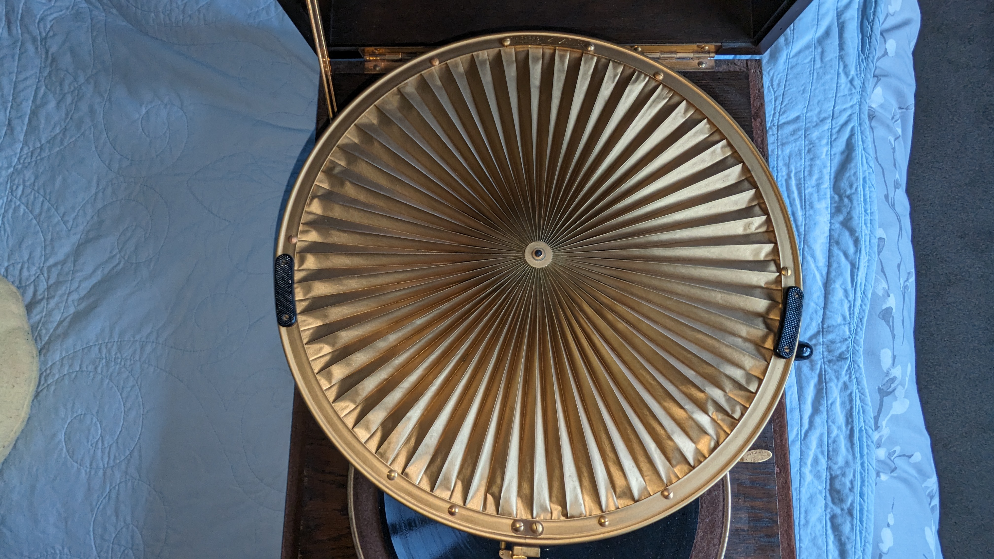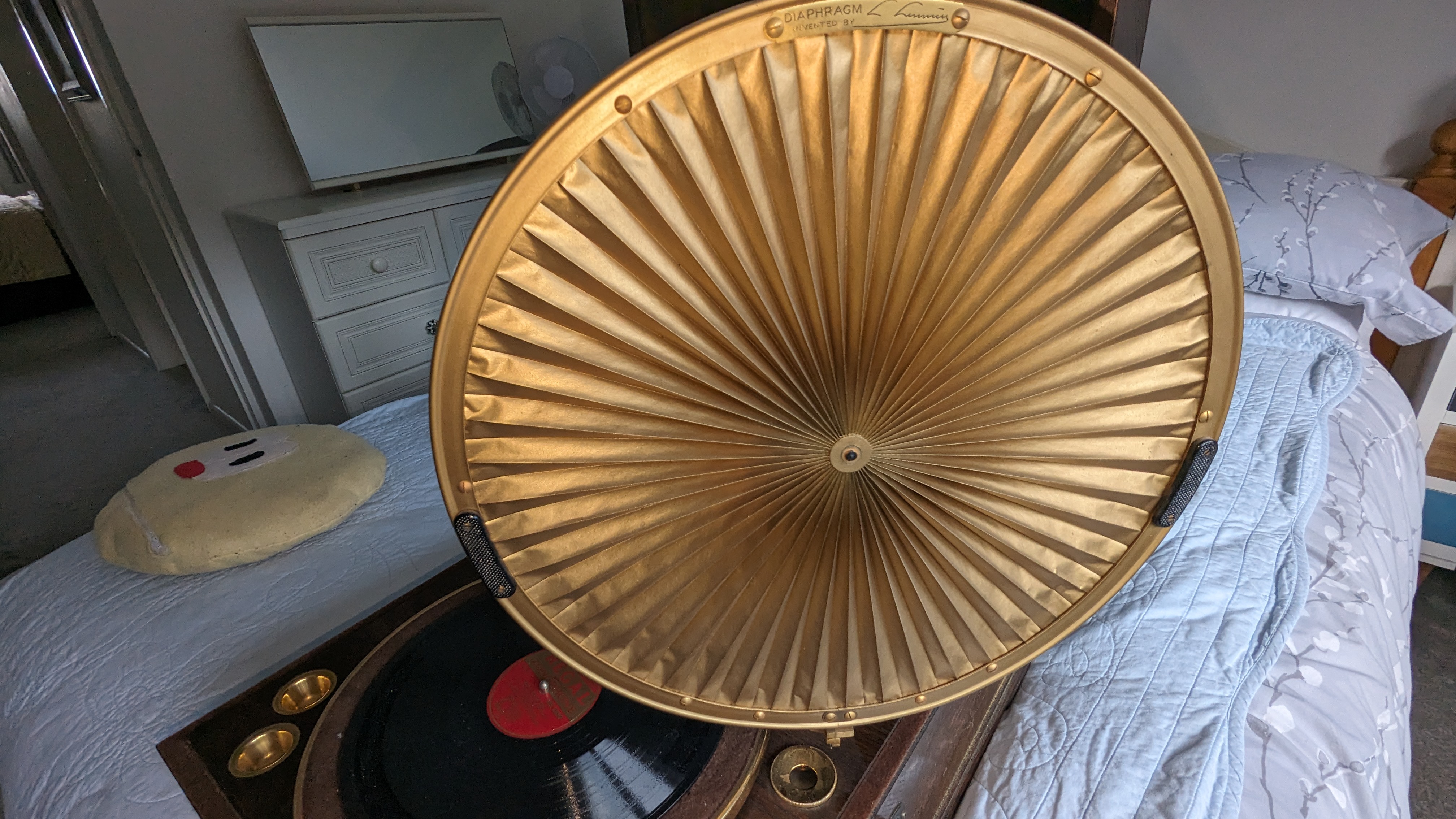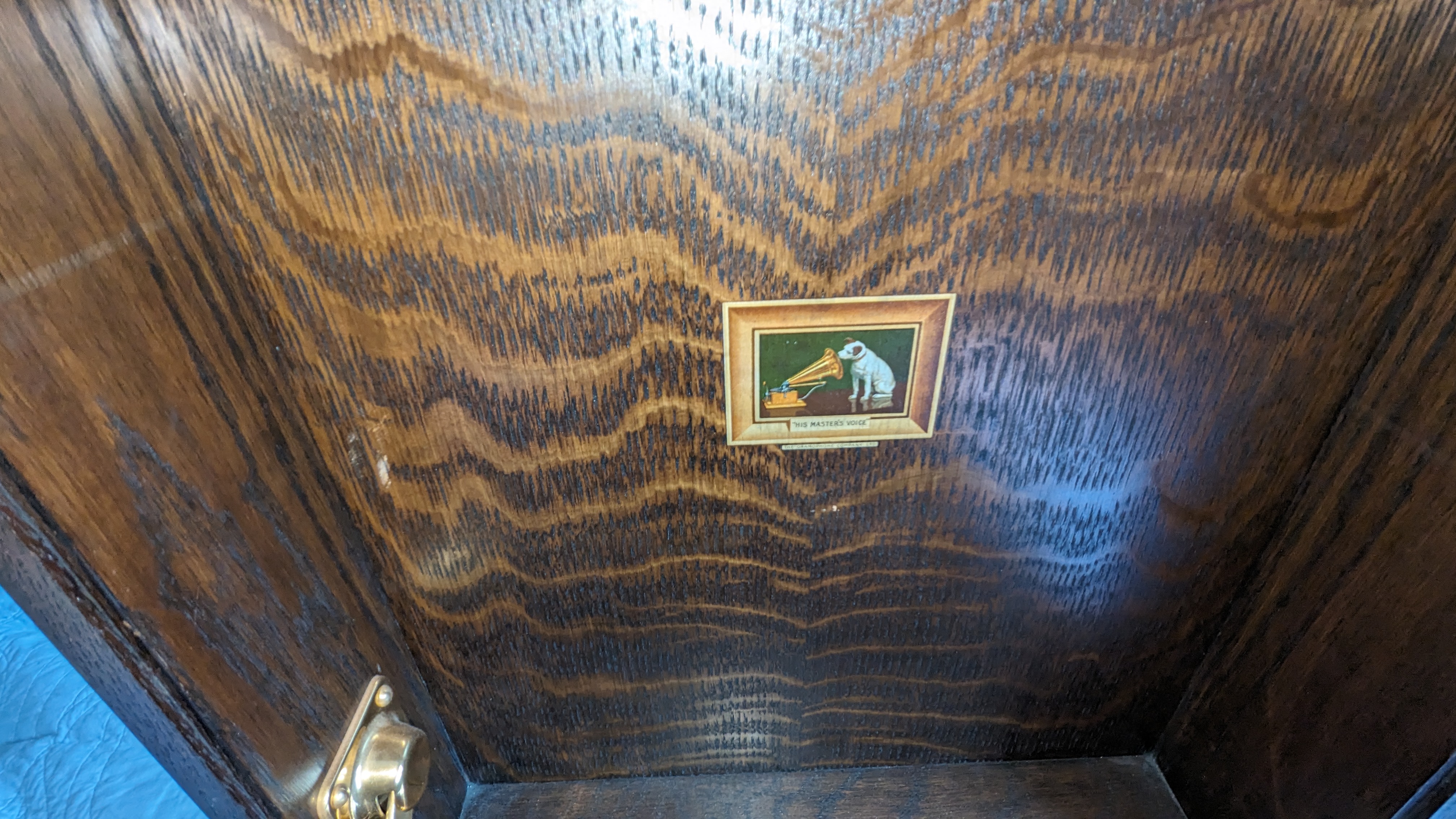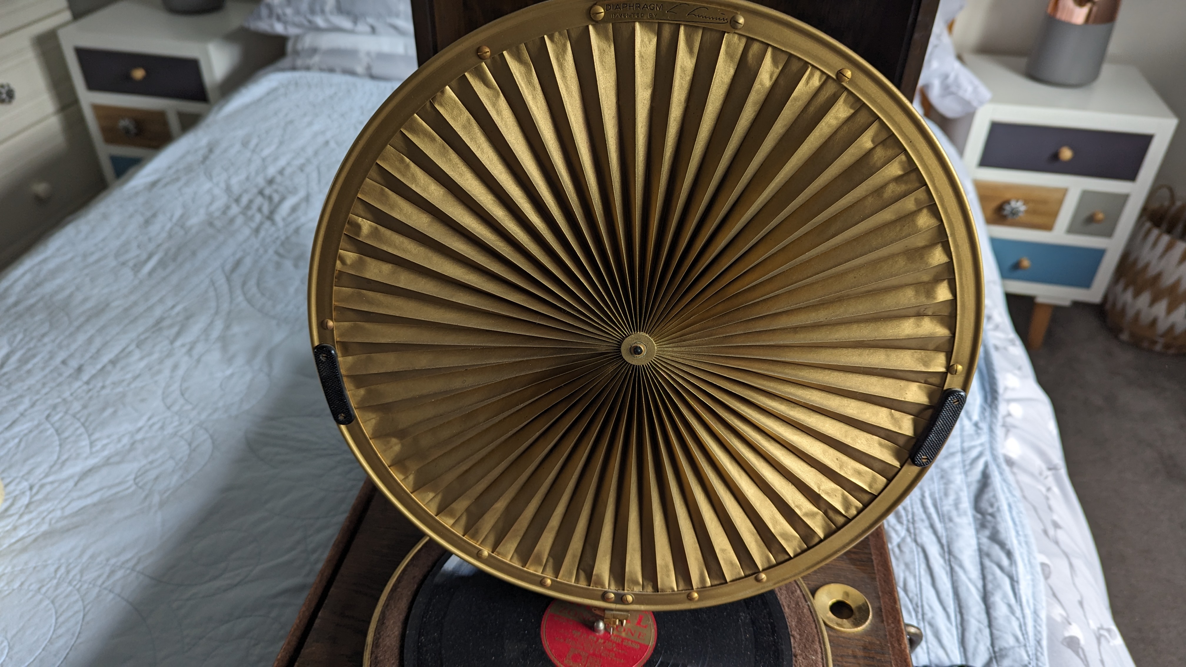 It's in excellent condition with just a couple of knocks to the veneer of the rear corners of the case and a missing key - but it works and the paper diaphragm is unmarked which I understand is quite unusual.