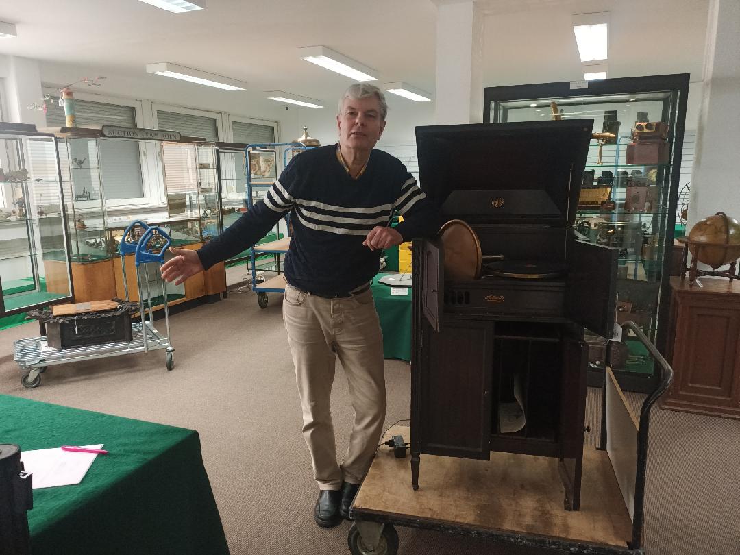 Very interesting info, pertinent to some things I've wondered. By "very large" you mean the 14" ones? I'd assume the 16" and 20" ones wouldn't fit either model, but I'd wondered about the 14" size. One member here once said they wouldn't fit his, but from what you say that's not the case for every Actuelle. Underpowered Pathé motors have been a bugaboo of mine for a long time; I had a diffusor (my "avatar" photo machine) that sometimes needed touchup windings to play even one side, which is why I eventually splurged on a big open horn "Concert" model and sold the diffusor. I also had a Pathé 0 cylinder machine that was not exactly a powerhouse, either. Now the big machine is having motor issues, too. It has a very strong spring, but it's not getting up to speed for the center start records, much less for the 120 RPM 20" jobs. I'm having it serviced in hopes of getting it going faster. Meanwhile I'm camping out on a No. 100 upright, my very first spring phono, which has been with me for about a half century now. It's capable of playing the 14" records, and its motor will run for something over two 11.25" sides but not quite three on a winding.pianolist wrote: Wed Oct 23, 2024 3:24 pm ...I can play the very large inside start discs on mine, they just fit. I have a friend with an H that looks the same but the lid prop is different and blocks him from being able to play the large discs. ... The motor is a bit small and must be wound every playing. ...