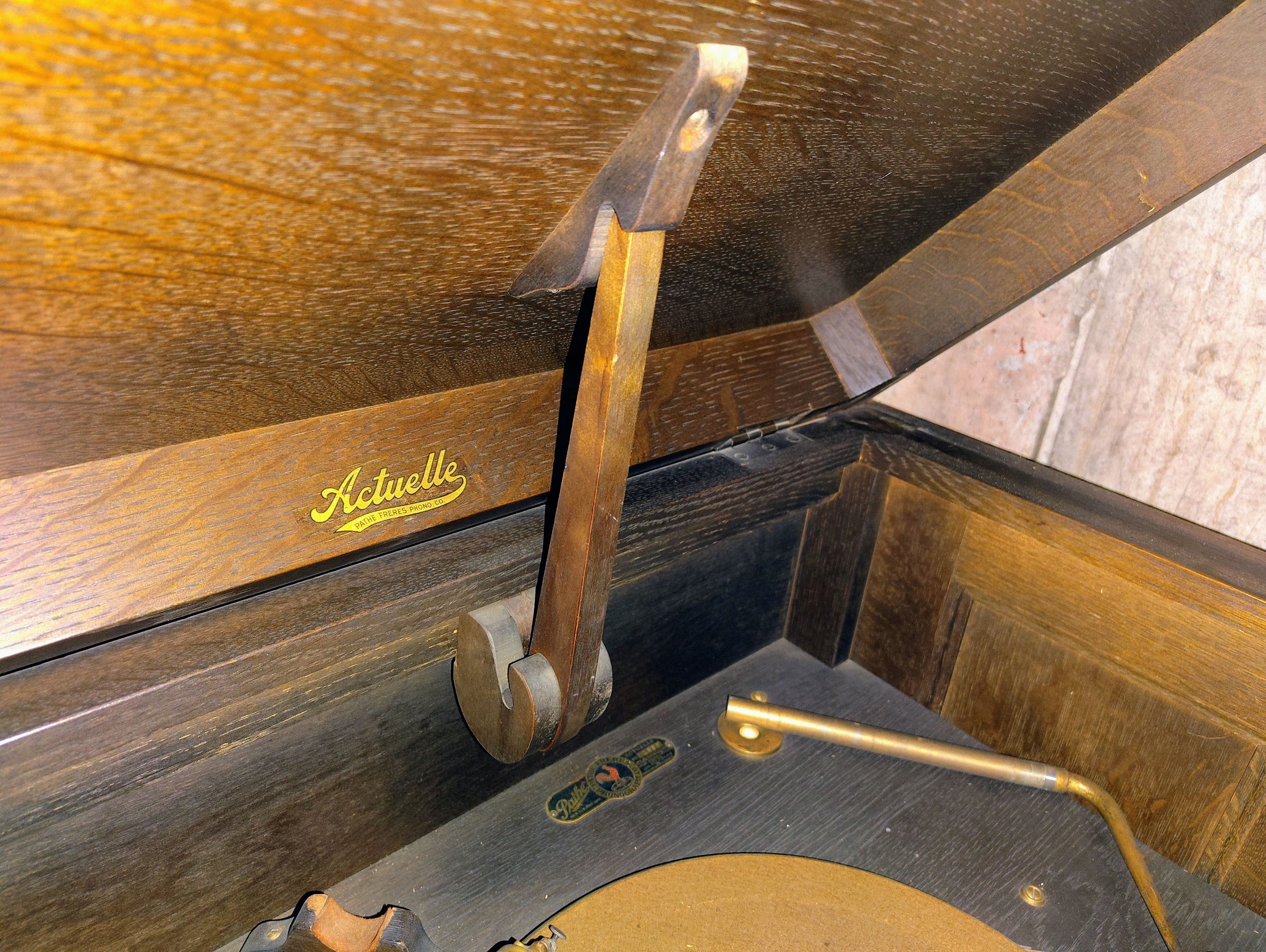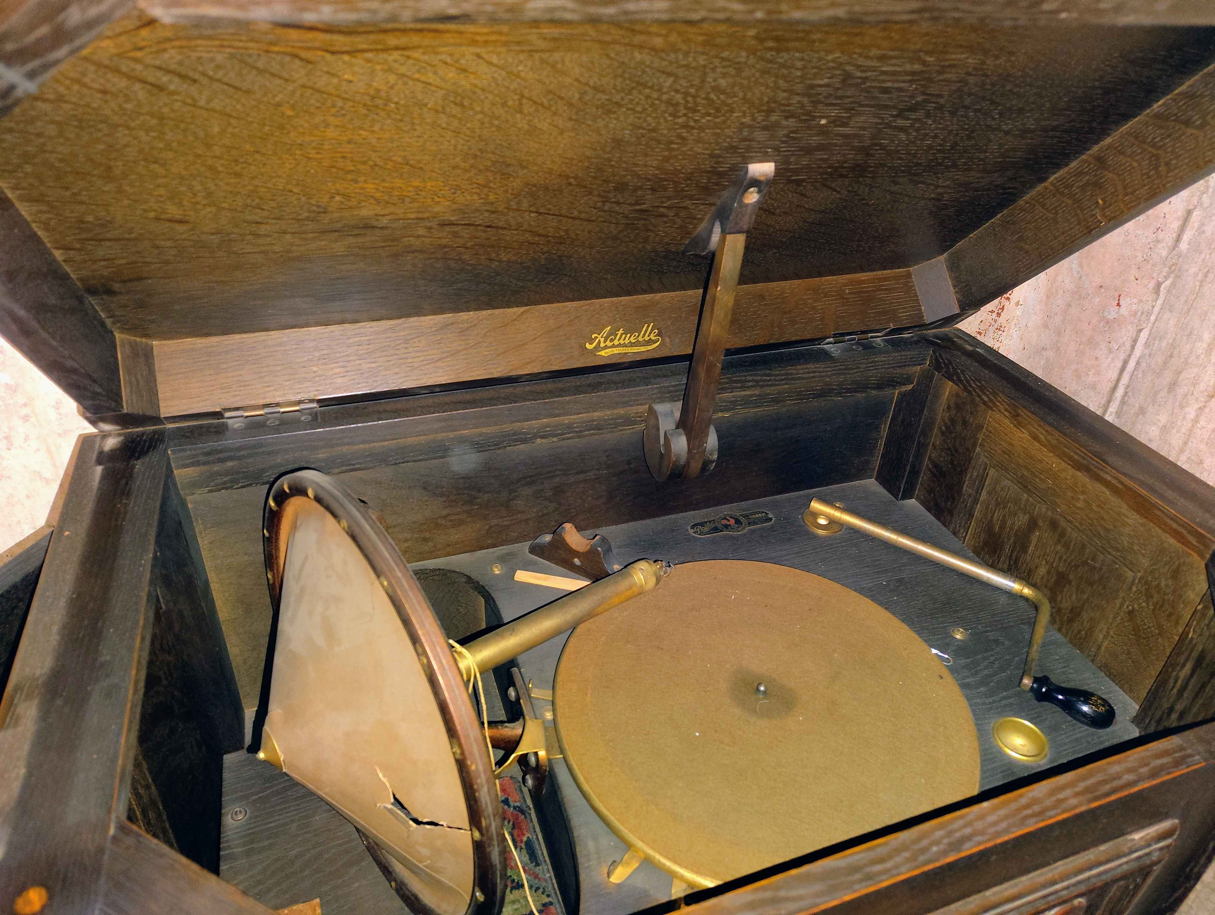 Upon a basement cleanout after a water line broke, I found, under a sheet, an amazing old phonograph. It is functional, and has very little wear and tear on it, except for the cone. But, I've tried to research this particular phonograph, and I can't find ANYTHING on it. It literally has no model number. The tag says "Actuelle Classique". I'm hoping someone on here can fill me in on what I have here. And no, it didn't get touched by any water.