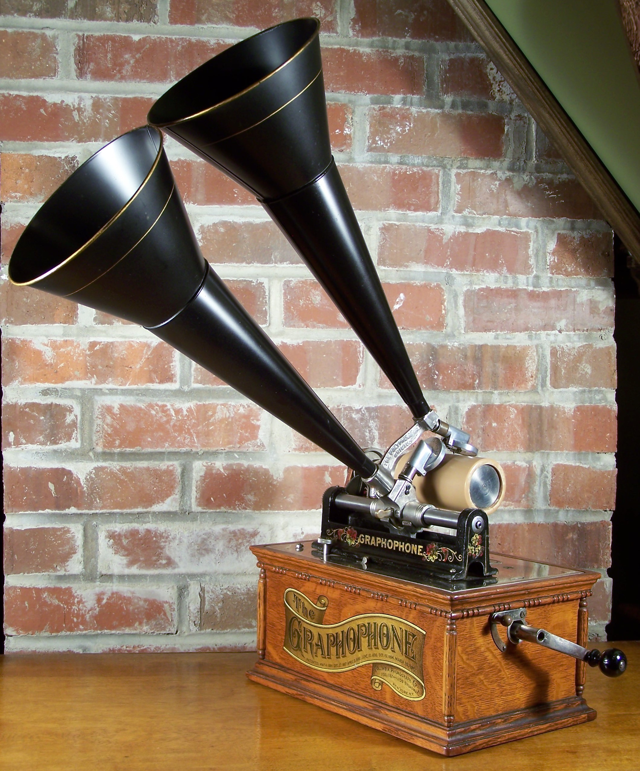November 8, 1898: Leon Douglass was granted a U.S. patent (No.613,670) for what was marketed as the “Polyphone Attachment.” By arranging two reproducers (and two horns) to track a cylinder record groove about an inch apart, it was claimed the selection would be “Twice as Loud, Twice as Clear, Twice as Sweet.” For much more: https://forum.antiquephono.org/topic/37 ... mment-2146