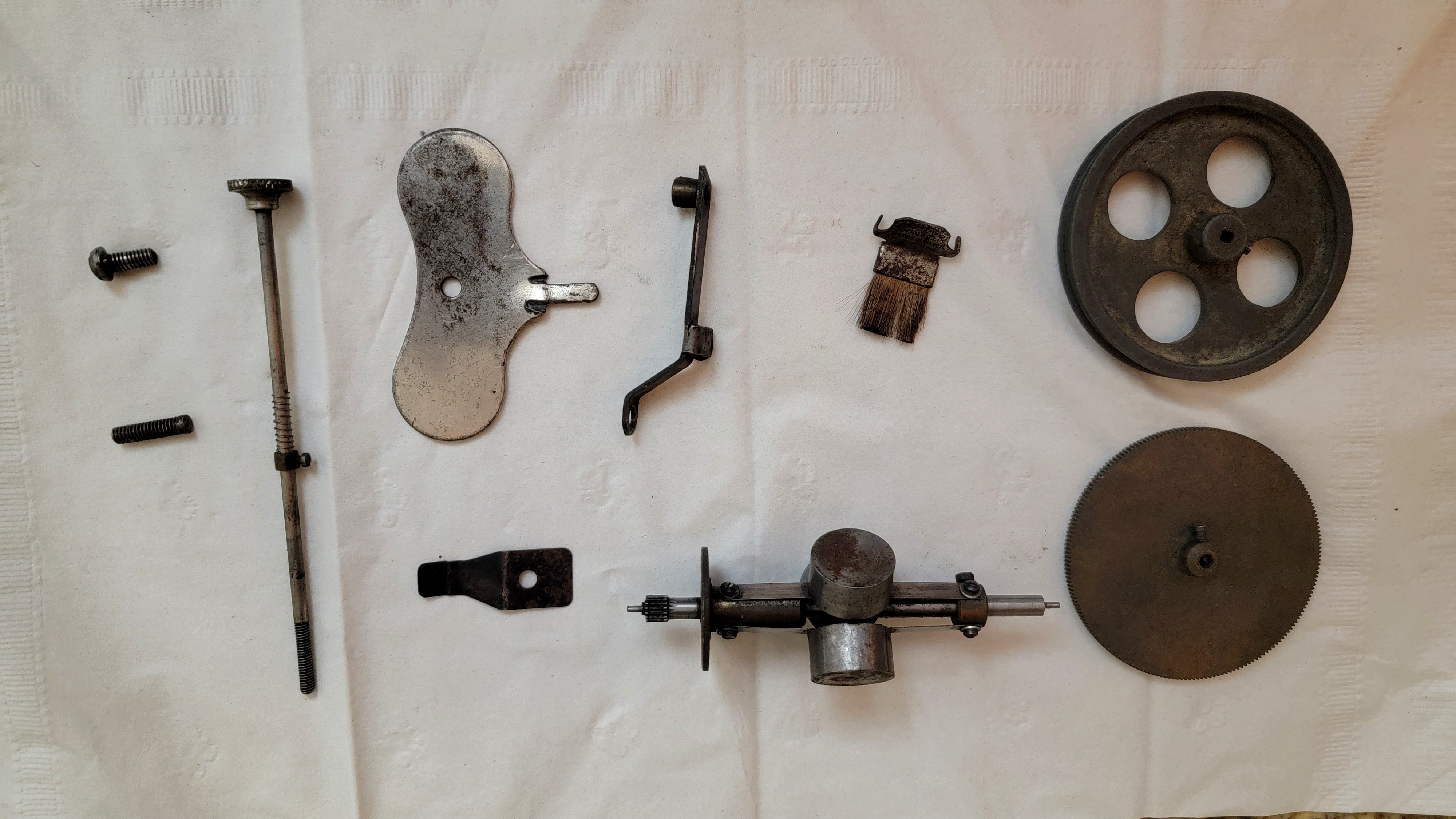 Jerry, the inside pieces were just laying around on the wood base and I am sure there are several pieces missing. See attached photo. Also, see the photo of the end of cylinder. I would like to know of someone who could restore it to working condition.