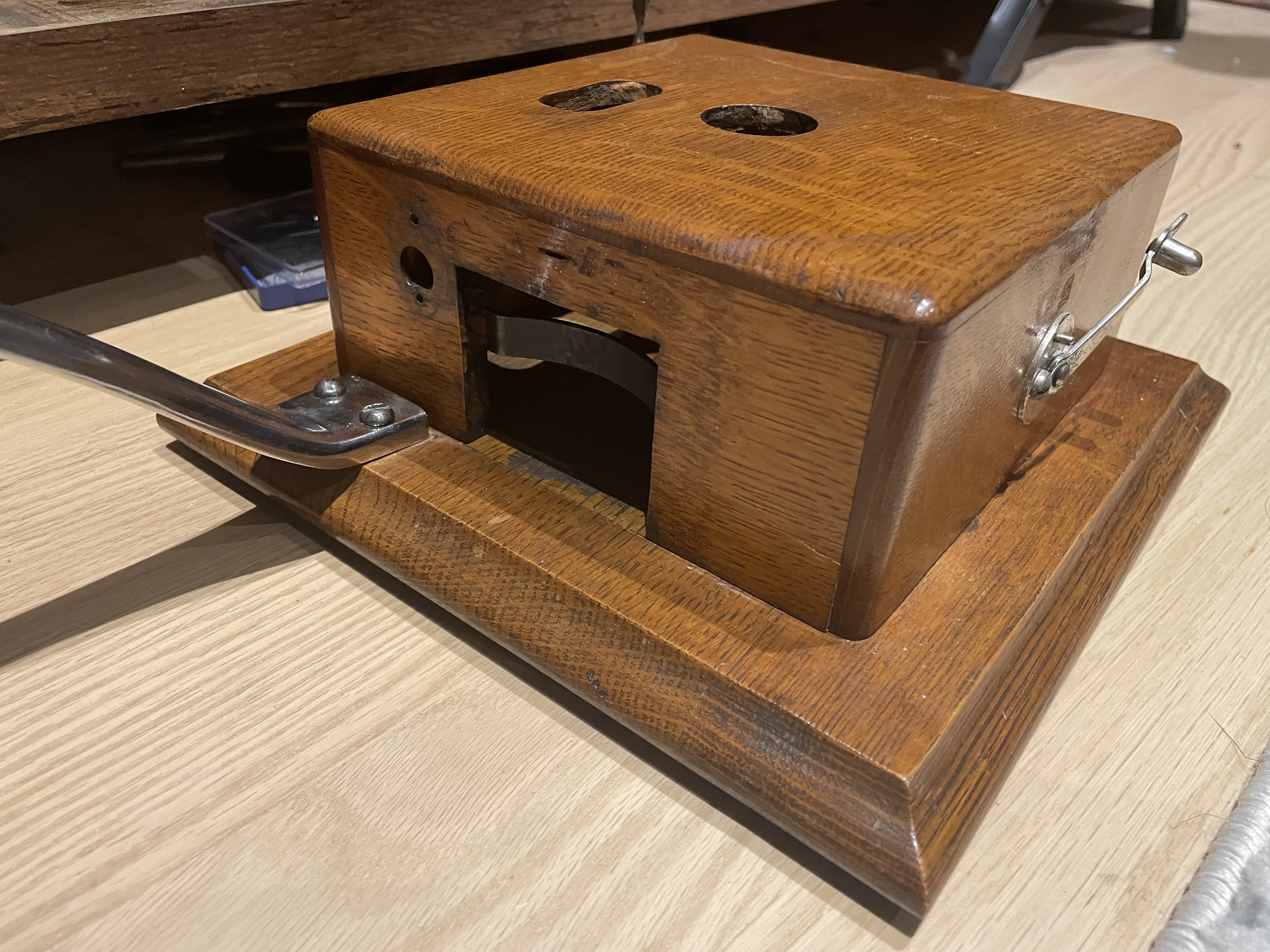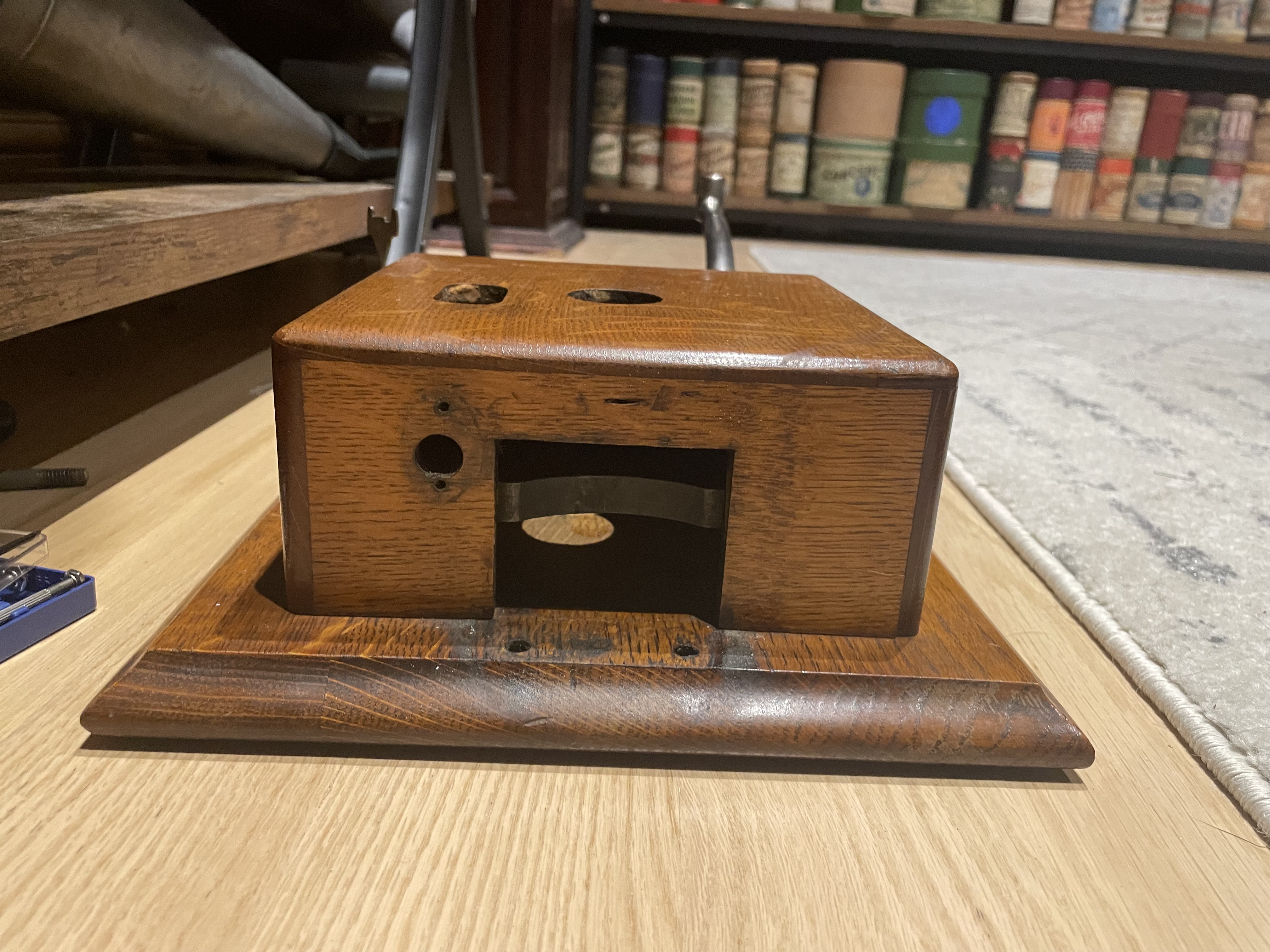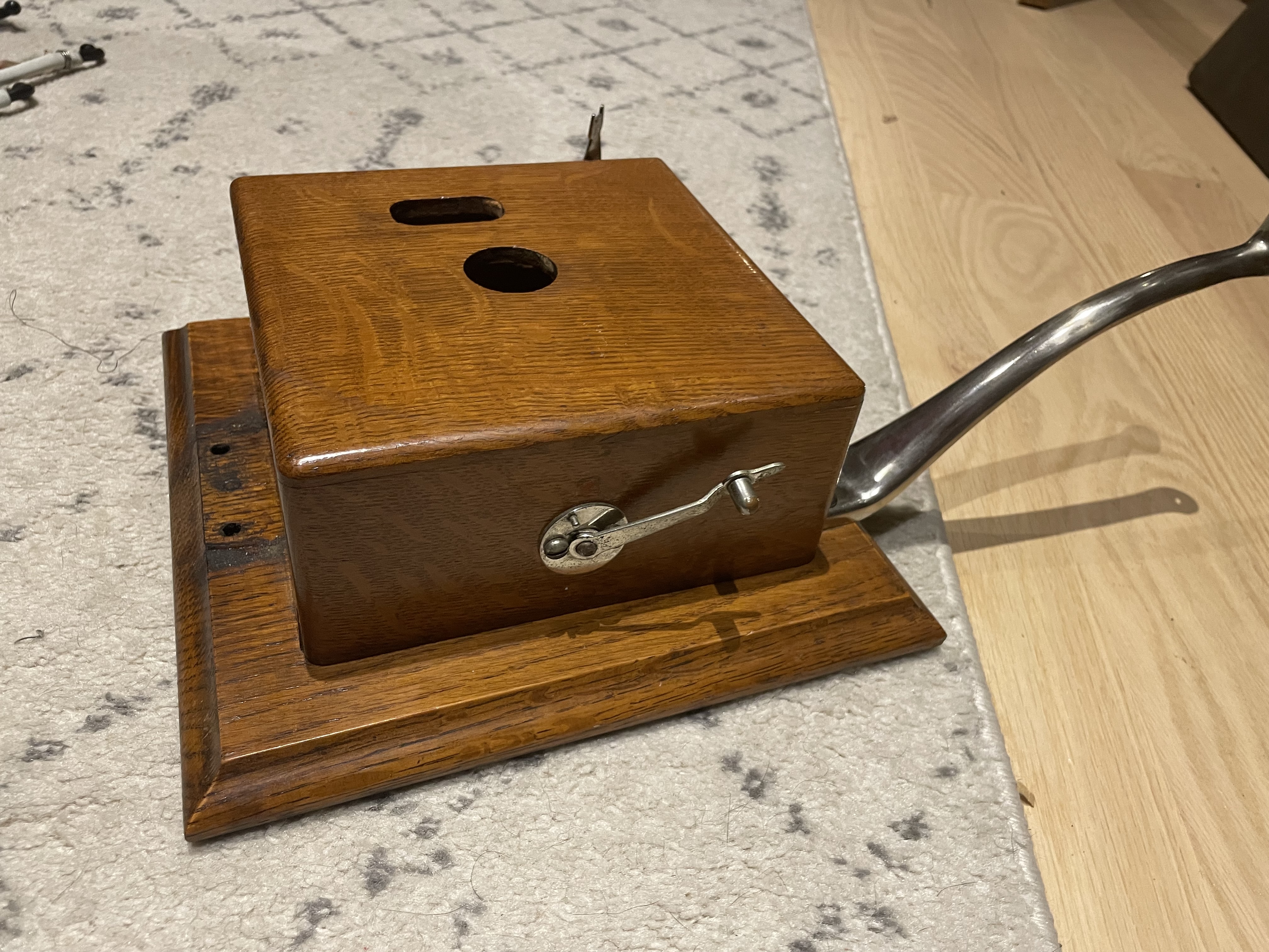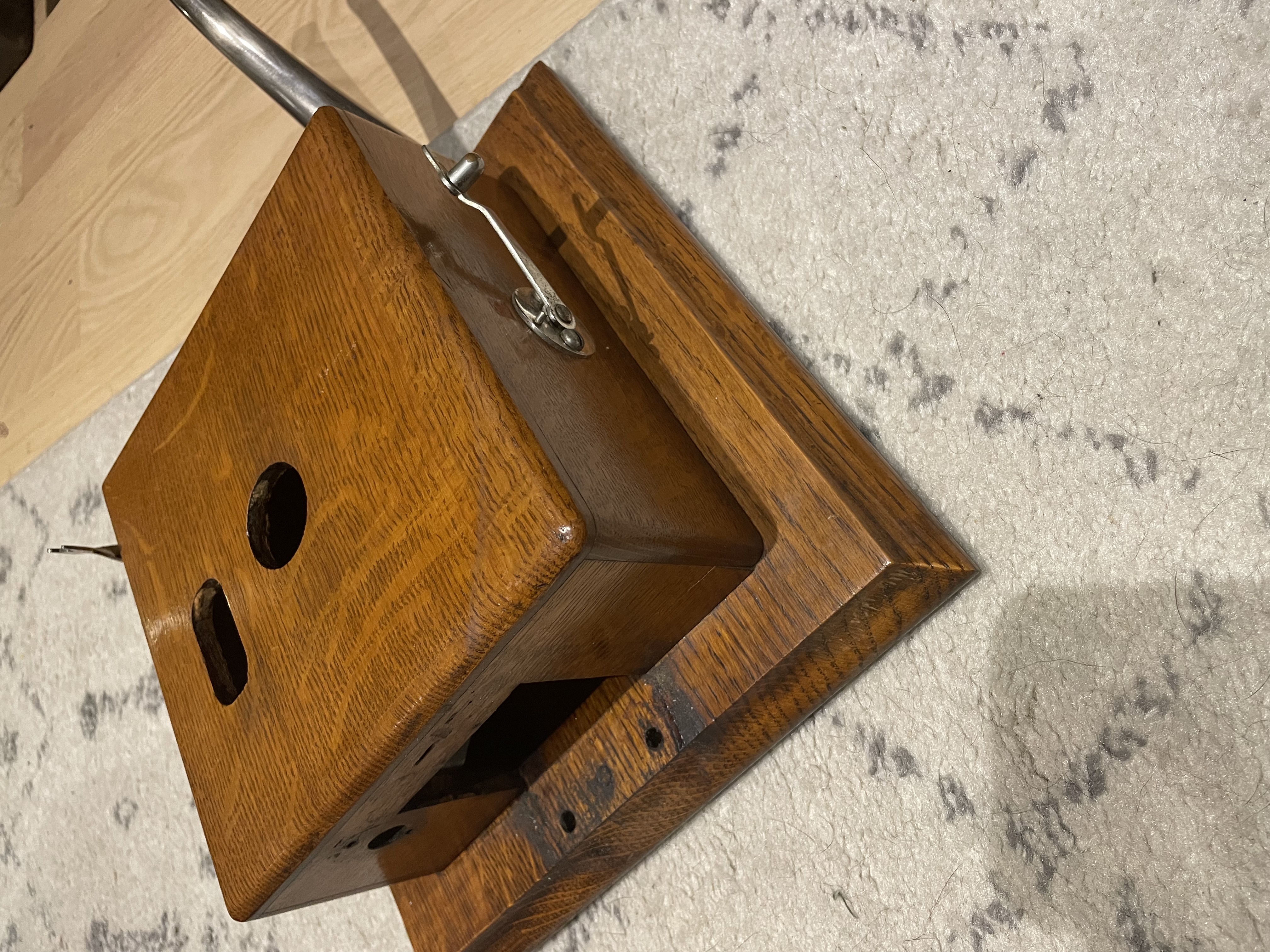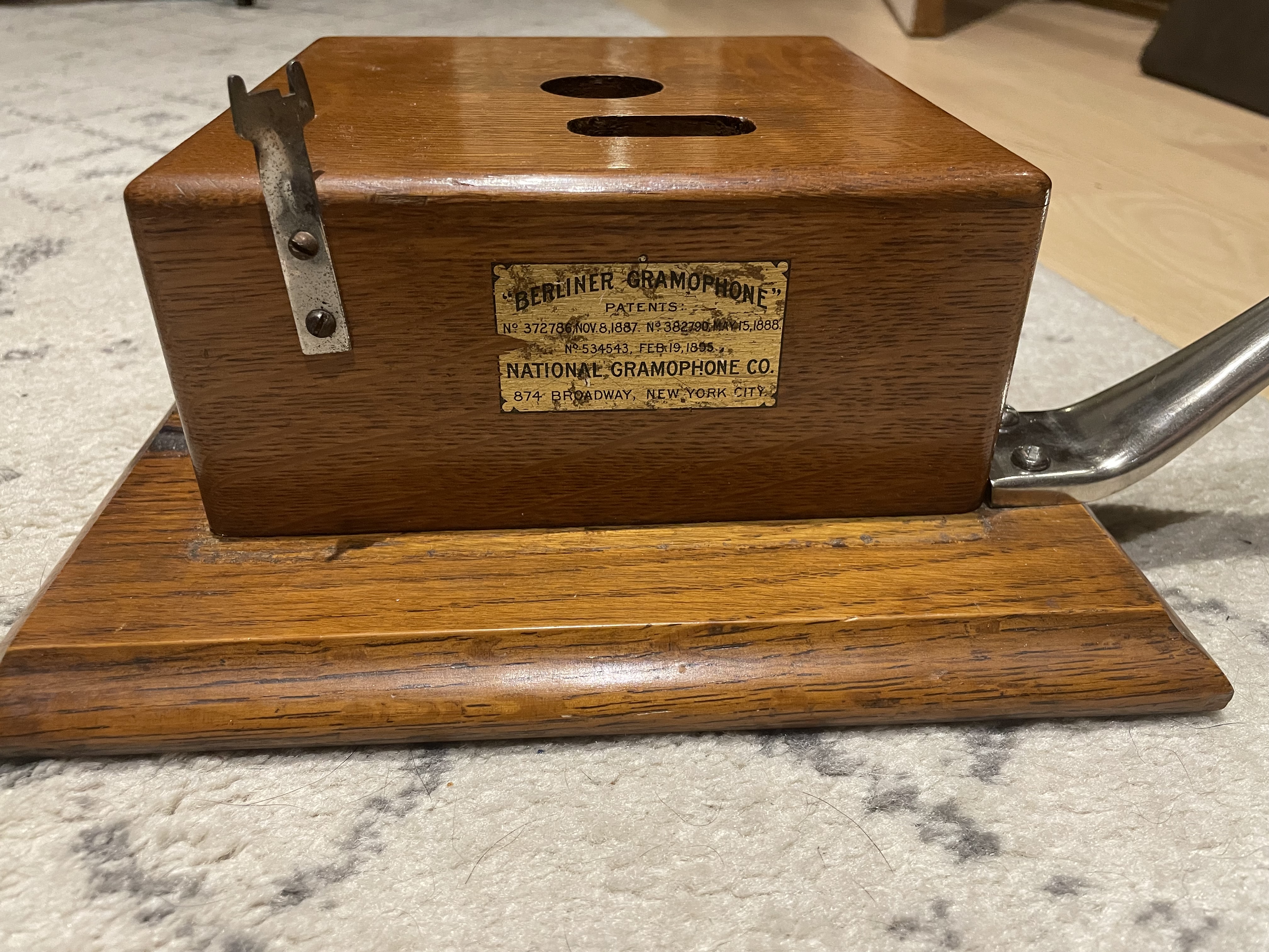 US Berliner original case and parts. Has side brake and rest. Support arm is nice reproduction. Finish is super nice and decal is good. Appears someone may have drilled and filled a small hole at one time above side brake. Partial paper instructions are on the base. $450 + shipping. Best to contact me at my regular email [email protected]