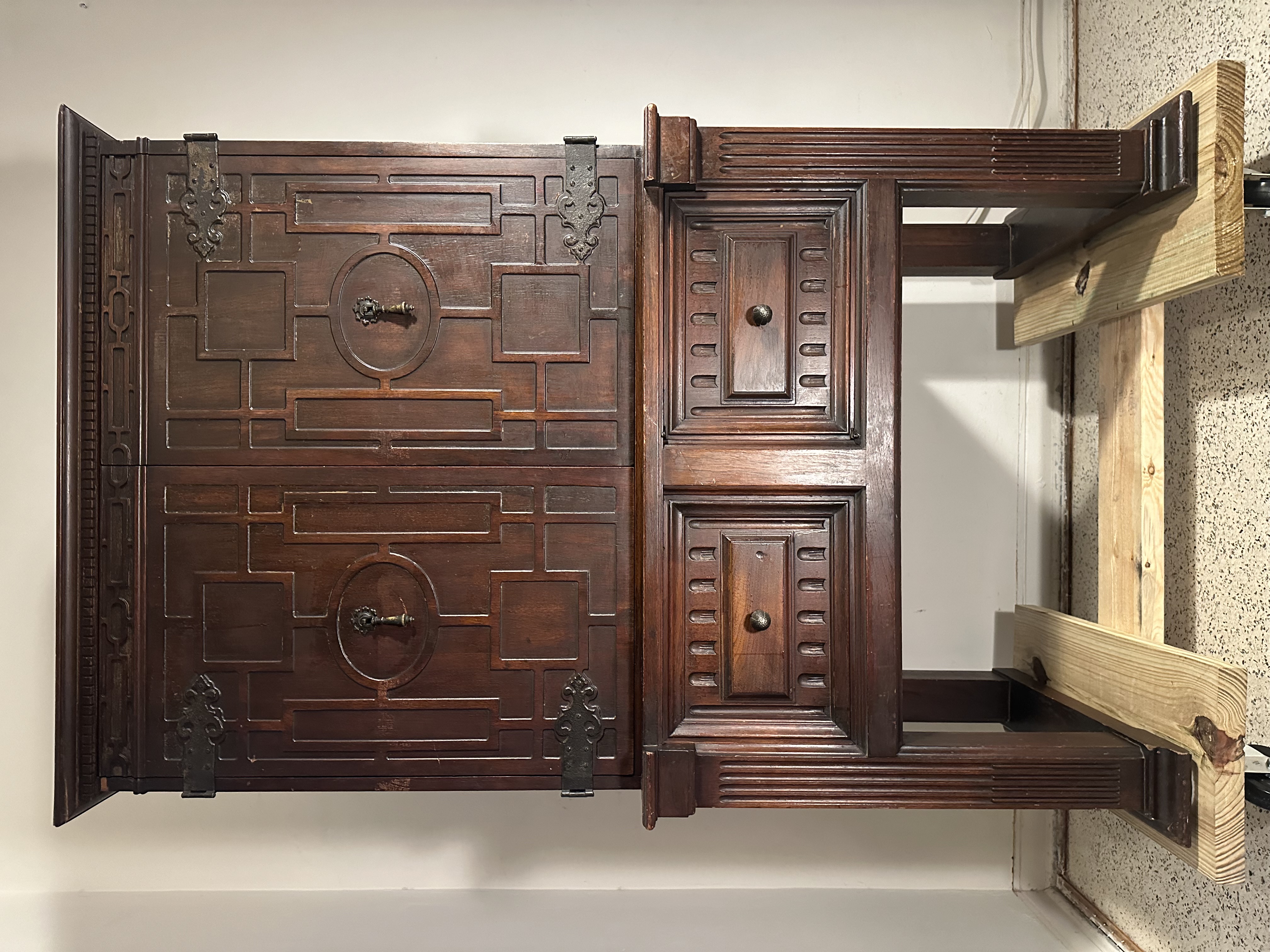 You can’t tell from just the 3 photos on LiveAuctioneers.com but the RE-156 does have the phono compartment front pull down door, it’s just flipped up.
