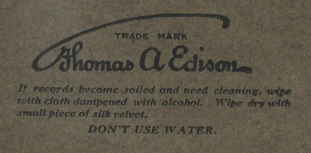 In any event, it seems to me that years ago someone referenced an internal Edison factory memo about the damage done to diamond discs because of improper cleaning with water. I've been culling through the online Edison Phonograph Monthly PDF files, but can't find anything about it there. I'm sure some phonograph archivist probably has it in their records.