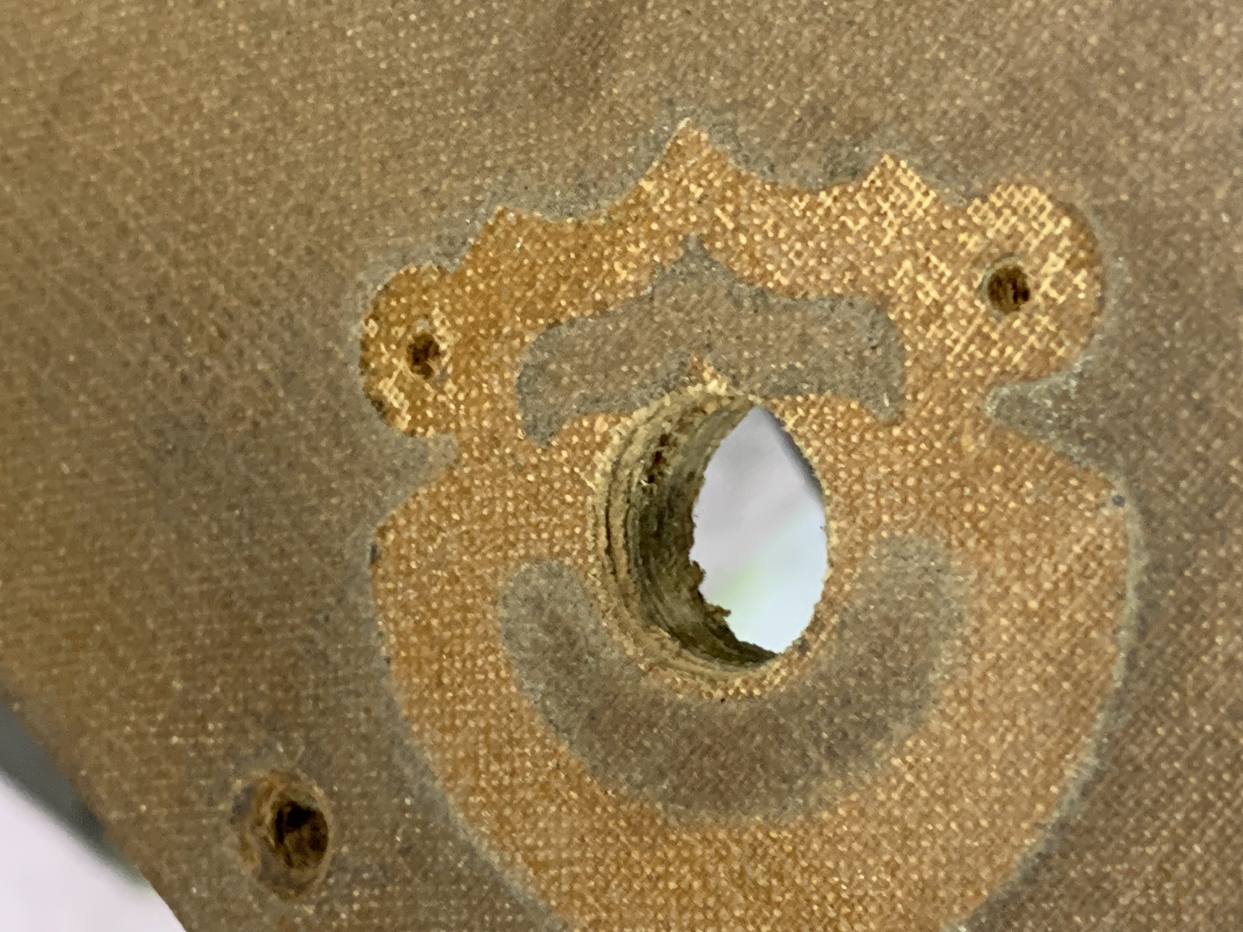 We can't see enough of the motor board to see how badly damaged the cloth covering is. Does the motor board cloth match the covering on the rest of the machine?