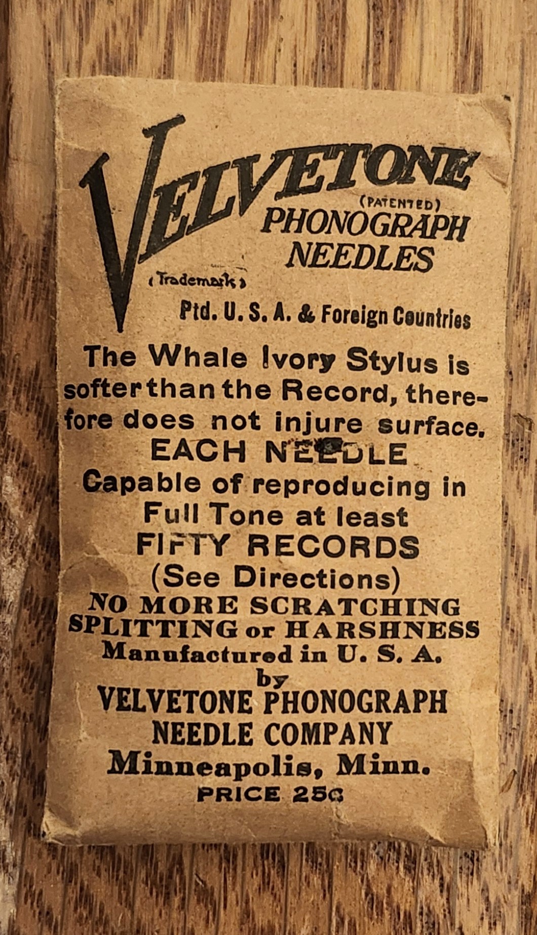 Re: SOLD: unopened Velvetone Needle package