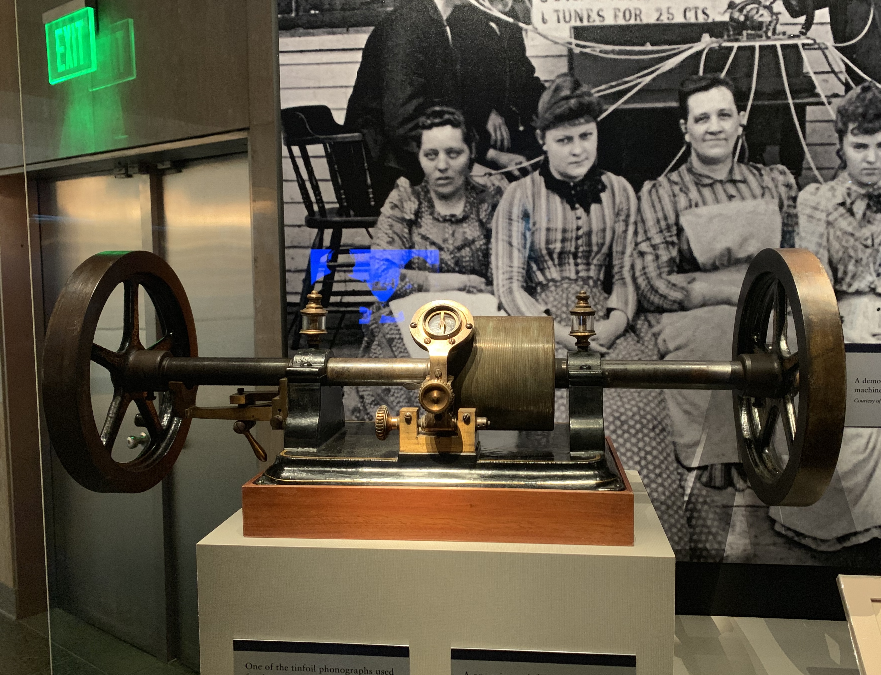 Many generations ago, the Smithsonian restored some things, repainted, replated, etc. That ended in the 1970's, and good thing that it did. Much of what you see on display at the Smithsonian has not been restored but rather conserved by professional conservators. Please see the attached picture of a well-preserved phonograph at the Smithsonian. All original paint, patinated surfaces, etc. The surfaces have been cleaned of dirt and contaminants and stabilized as necessary. Imagine if this machine had been stripped, repainted, and polished because it no longer looked new. It would be a crime!