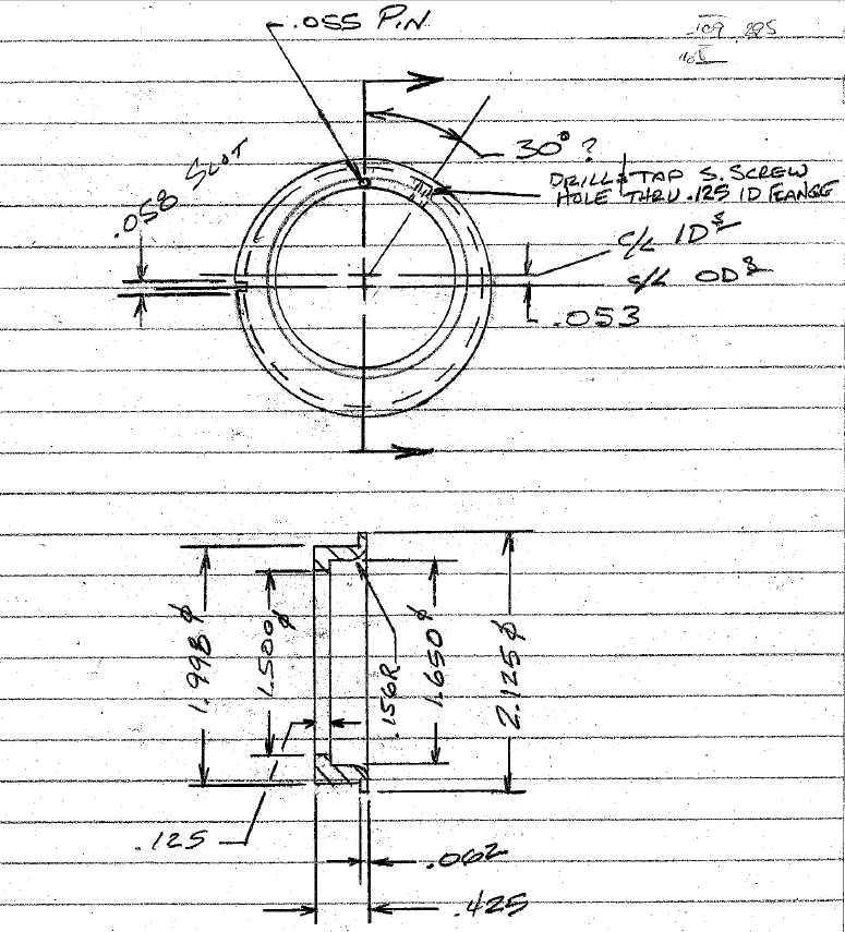 I made this drawing from a reducer ring on one of my machines. It's most likely a reproduction, but a pretty nice one. The dimensions are taken directly off of the part. If I were going to make one, I'd increase the .425 overall length to maybe .475 and increase the ID flange width to .175. It would make locating the setscrew a lot easier.