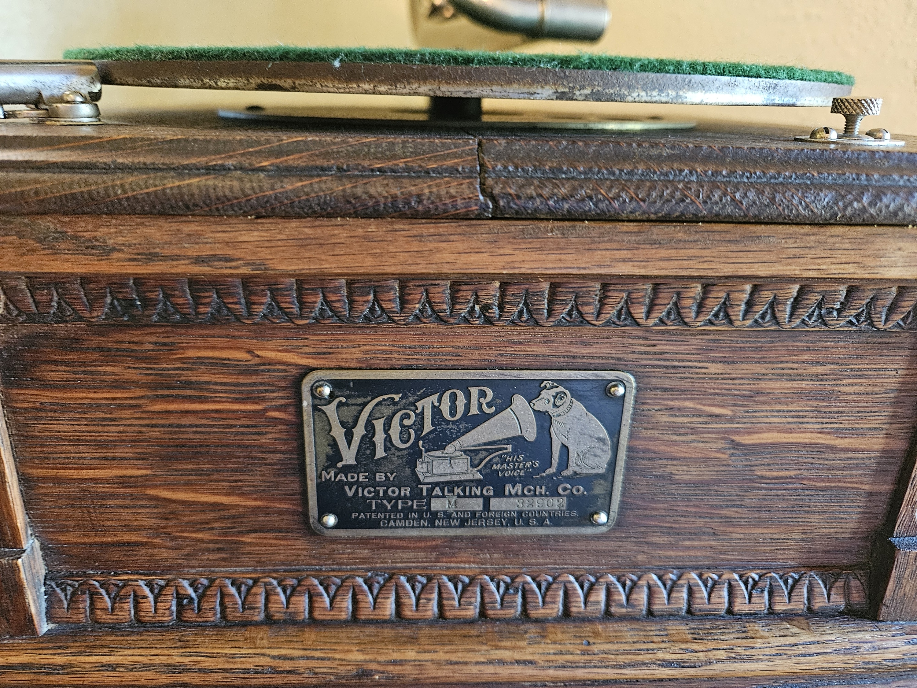 Up for your consideration is a nice Victor Monarch form 1905, serial number: 32902. I bought this phonograph in 2016 from Paul Edie of the Victor-Victrola Page fame. This Monarch had been completely restored by him shortly before I bought it. I played it a few times then wound up moving in 2019 and it went into storage in a spare bedroom and finally got it set up again only a few months ago. It still plays fine and as you can tell from the pictures is still in great shape. I'm asking $1500 shipped(continental US only). I can provide more pics and a video upon request.