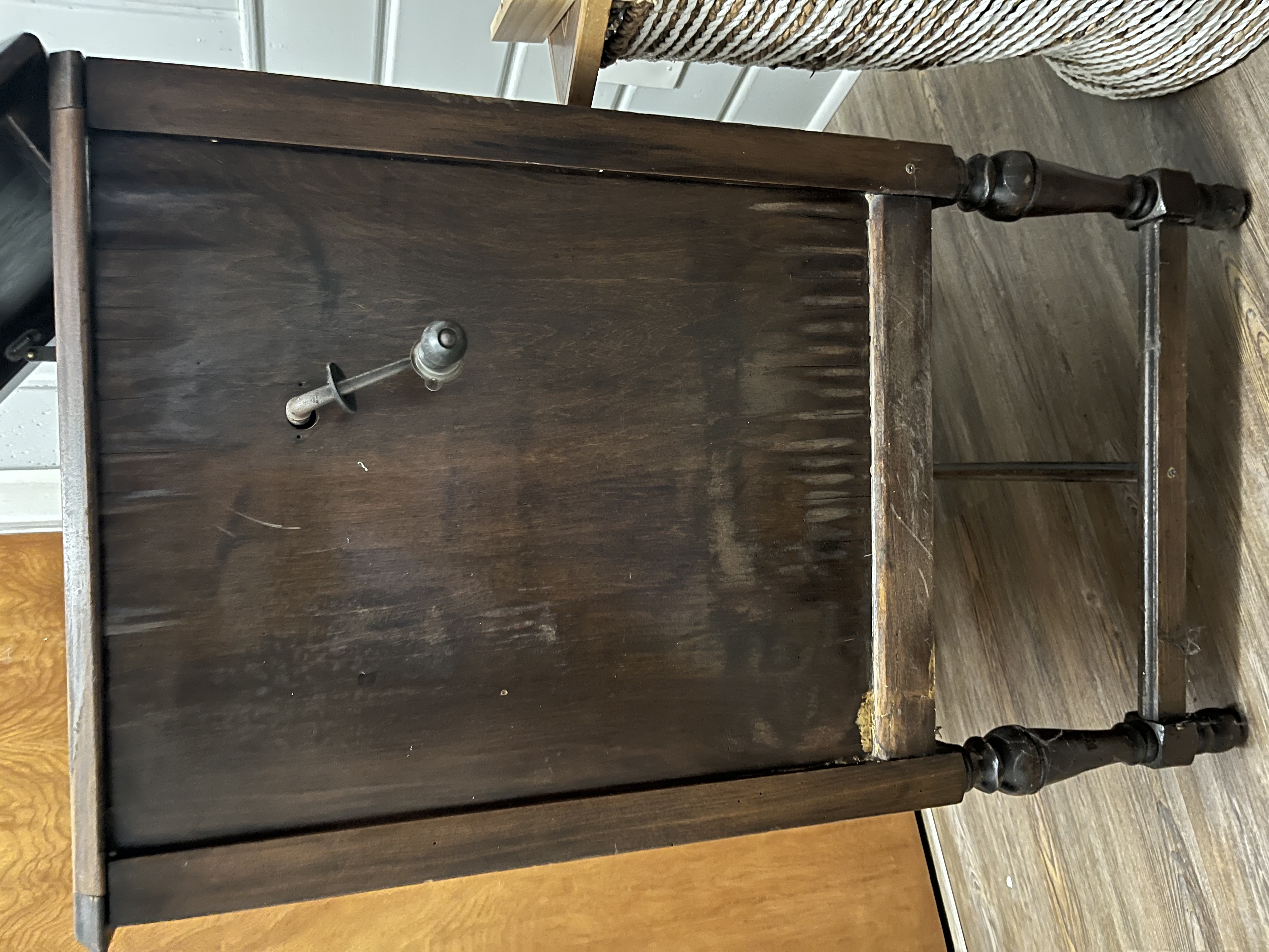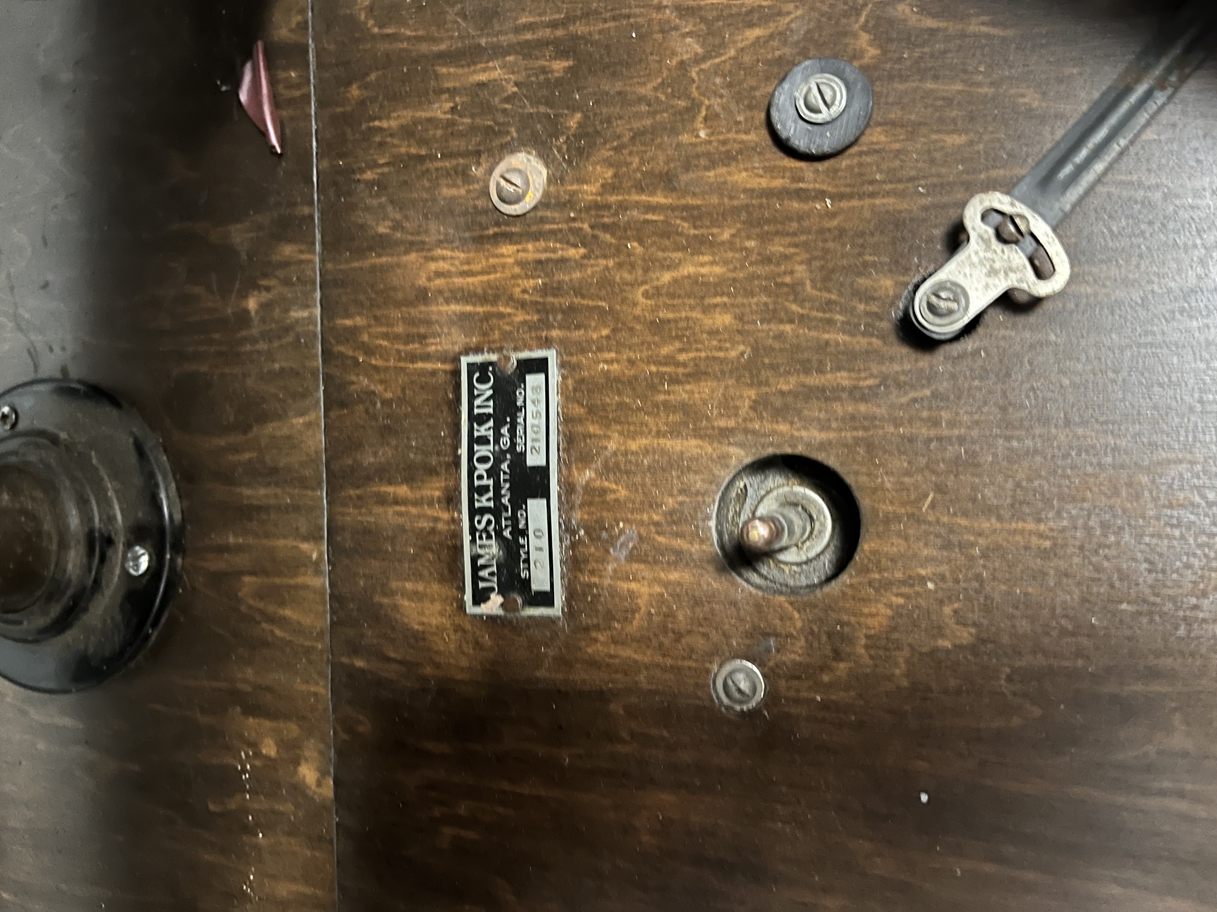 The Polk-Phone is one of hundreds of lesser known phonographs made by furniture stores, piano stores, etc. during the height of phonograph mania in the nineteen teens and twenties. Most used generic parts in purpose made cabinets, like the James K Polk Co. There are no specific places to locate spare parts and it will be somewhat of a search to find them. This is not an expensive machine, even if complete, so don't spend a lot attempting to restore it. You might locate parts on eBay or place an ad on the forum. I think the following poorly taken photo might be the correct reproducer, but I don't Know... The reproducer shown is a pot metal one showing stress cracks from age, so that may be the situation with any survivors...