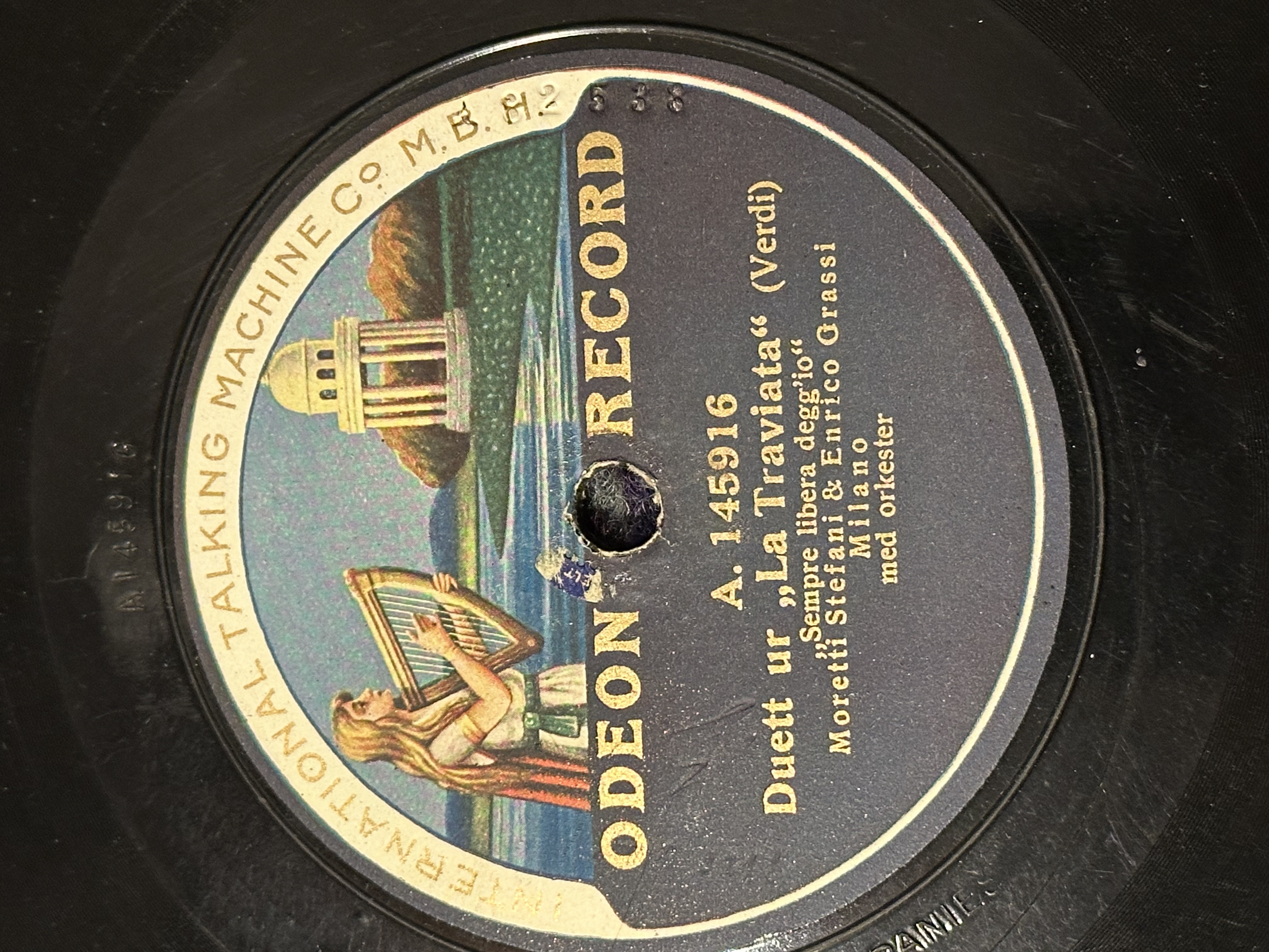 I have one and it's definitely unique. Made out of cement with a beautiful graphic on one side. The reason they don't play is that the recording side was a wax overlay which is almost always missing or partially flaked off. Mine is totally missing, but even if intact, attempting to play it would probably remove any remnants. Still my favorite record.drh wrote: Wed Jan 01, 2025 12:27 pm I've never seen one in the flesh, but from photos these are the most spectacular of the 78 era. Too bad the things are never playable.