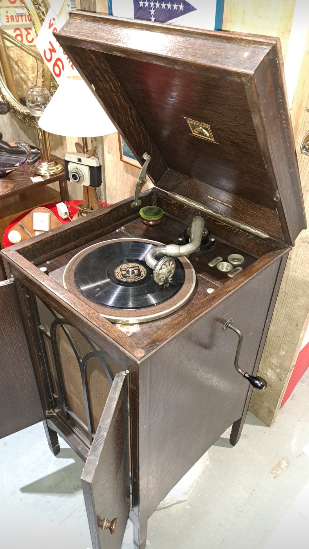 A close second would be this Selecta-phone, purely on looks. This struggles to play a whole record, even with help, however I rarely come across external horn machines at any price: