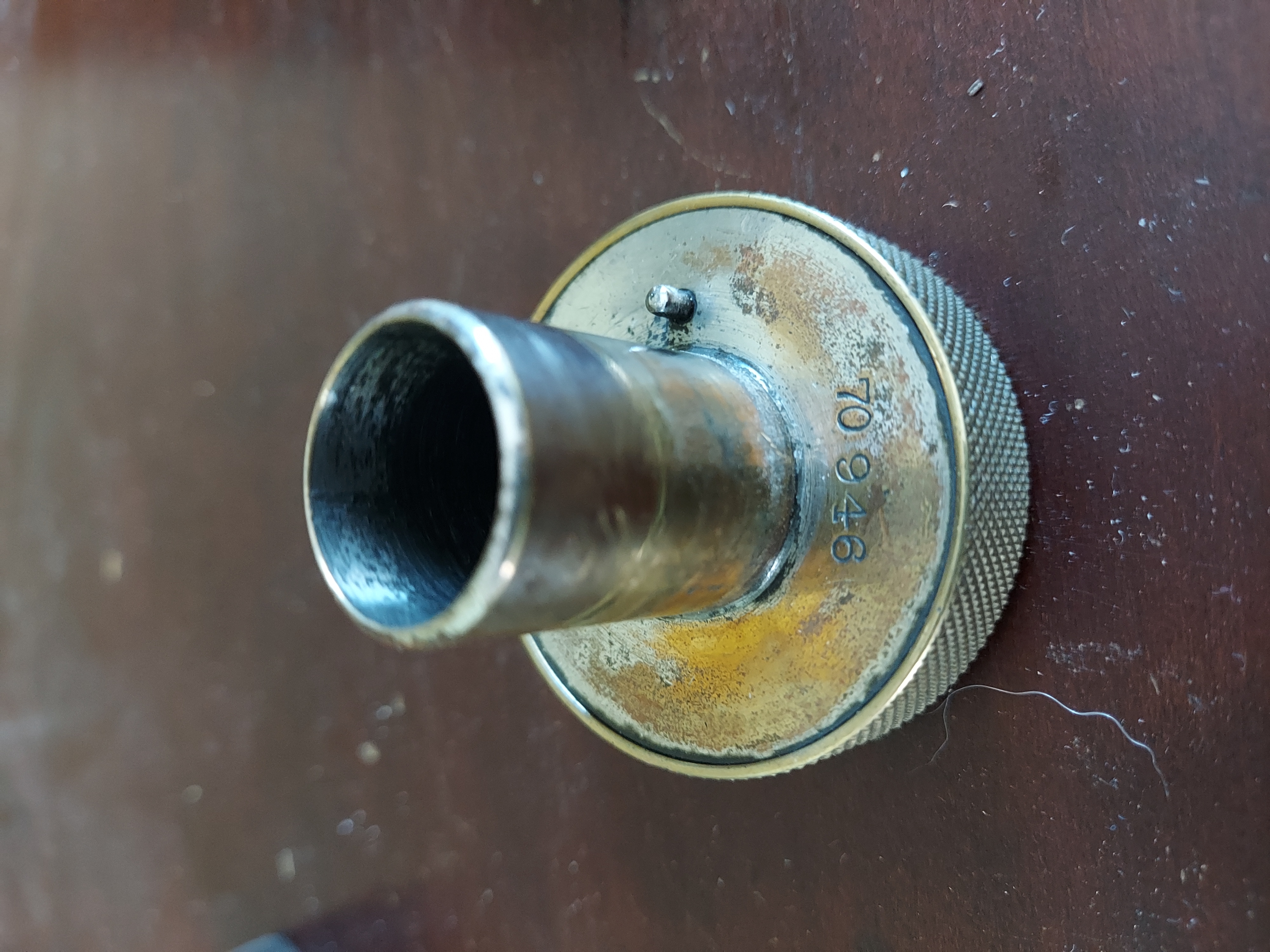 Victor Concert long throat reproducer taken off of a Victor E front-mount. Reproducer is in great shape. Still has its isolator and rubber connector hose.