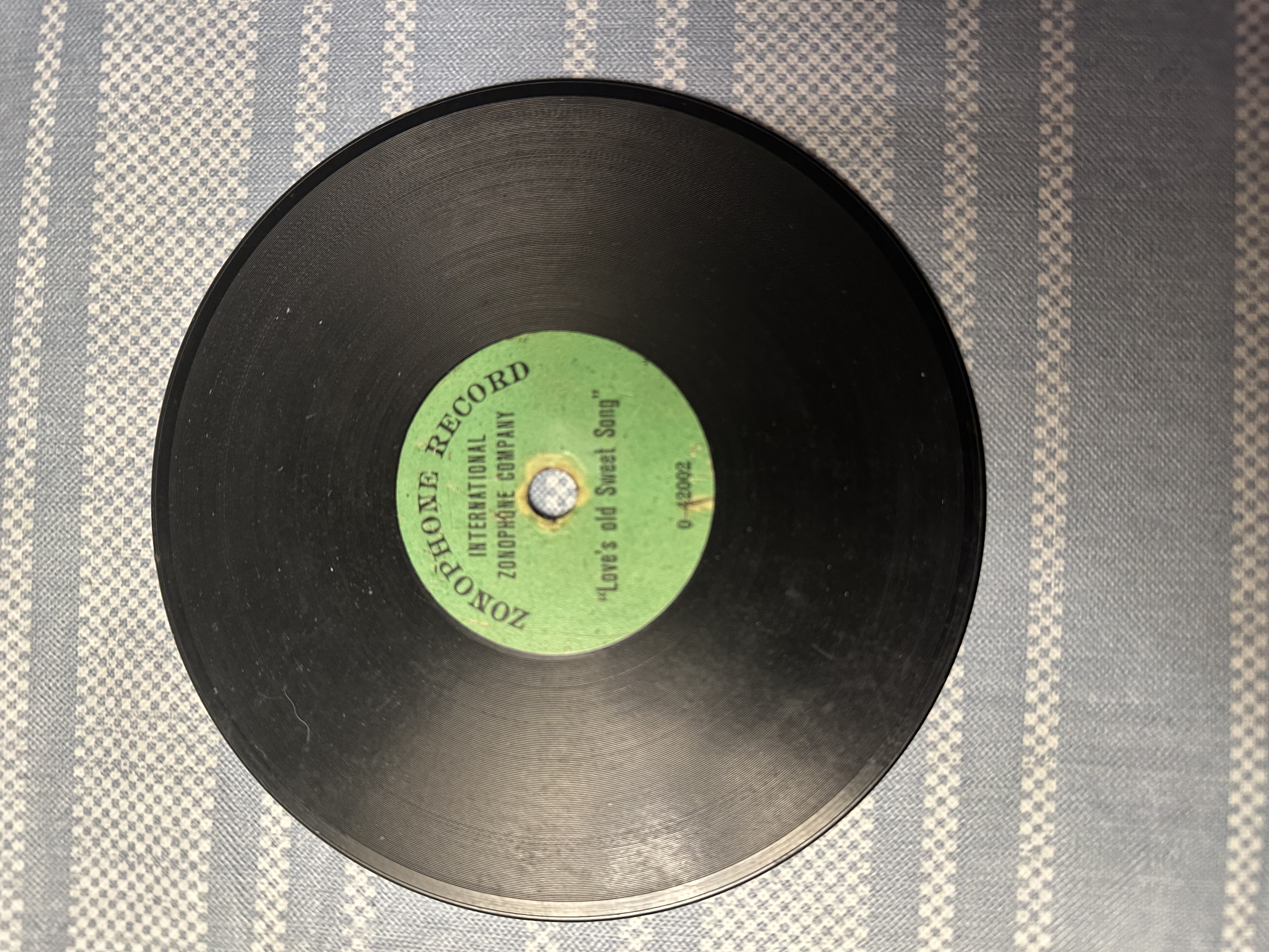1. Euro ZonOPhone 5" record 0-42002, "Love's Old Sweet Song". Probably 1902-5 ish given the paper label. Guess Zono pressed a small series of these tiny records, not sure why. V+ or better, plays great. $75.00