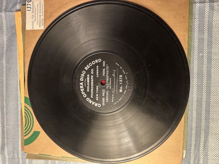 4. Columbia GRAND OPERA DISC no. 1378, Aria from "Le Prophete" by Ernestine Schumann- Heink. I'm not entirely clear on this but I think this is a very early pressing due to the black label. Visual V++, plays great! Stupid rare- $100 SOLD!