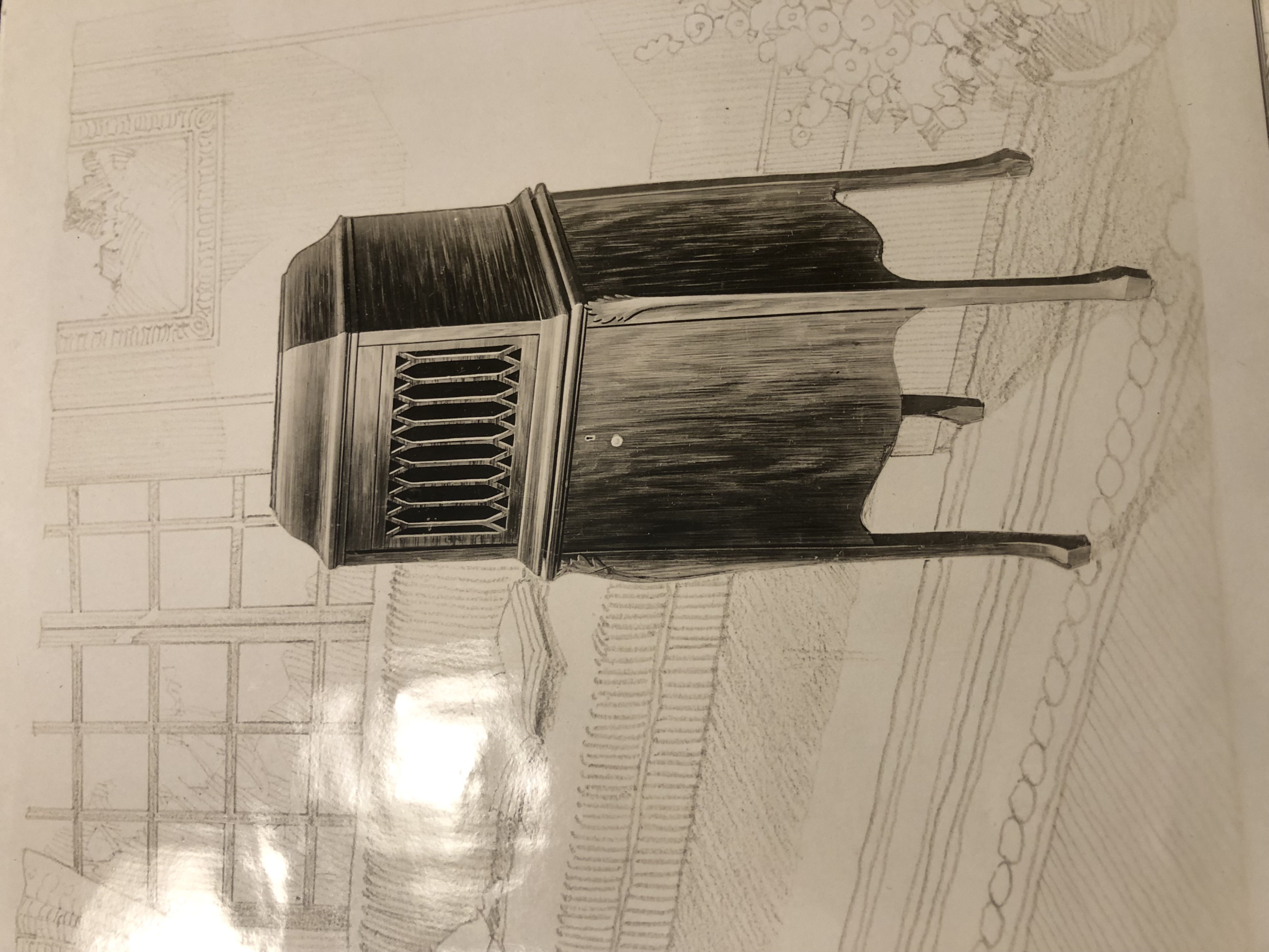 Models photographed are in order: Supreme, Invincible, Grand, Elite, Baby Grand, Minuet, Nocturne, Trovatore, Melodie, Louis XV ($325), Italian Renaissance ($325), Sheraton ($525), Adam ($325), Gothic ($1750), Jacobean ($1725), Louis XVI ($325), William and Mary ($525), Chippendale ($725), Colonial ($425), Duncan Phyfe ($725).