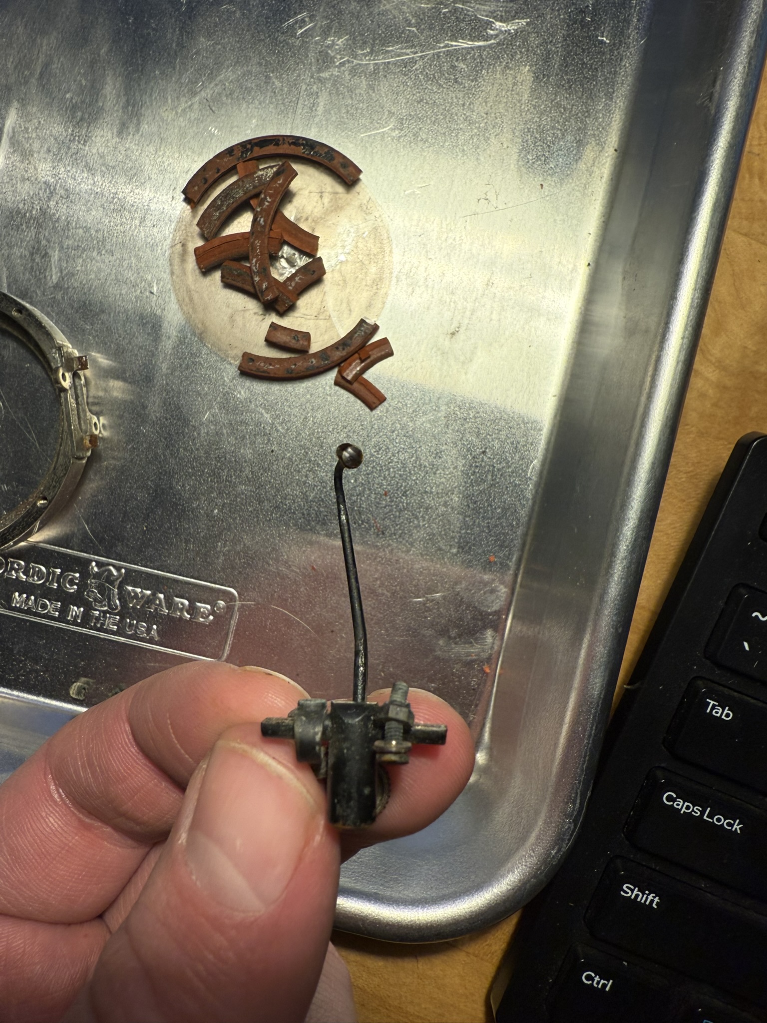 I am rebuilding a Victrola No 2 Reproducer. I rebuilt the motor for the VV-100 it came with several years ago and had a lot of fun doing that, but I have another machine upstairs that works good so I never got around to finishing this one. I have gaskets and new mica, but it is clear in disassembling the reproducer that it that it was dropped (maybe several times?) over the years and the needle arm is quite bent. It obviously played before, but not well! One the screws that holds the needle bar to the reproducer was also bent. I found a source on eBay (Gettysburgh Antiques) for the bent screws, but it doesn't look like anyone has needle arm. The Phonograph Shop has it in their catalog but is sold out.
