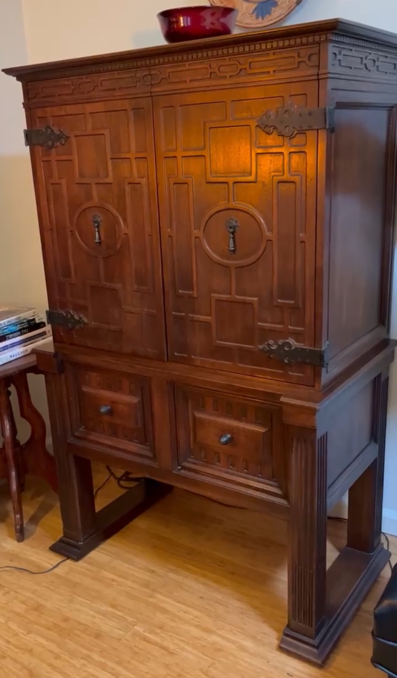 Very nice machine. Completely rebuilt and working great, including the record changer! Features a beautiful Walnut finished, Spanish style cabinet (based on an actual Spanish cabinet). It’s located in the San Francisco Bay Area.