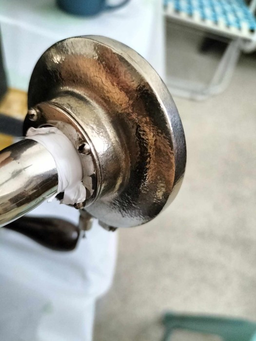 Based on the aluminum diaphragm sound box and swan tone arm, and my experience that it does play better electrically recorded records, I would echo the writer of Flickr website that this gramophone should come from the late 1920s. However, it including the plating of the tone arm and speed regulator has been kept in a fairly good shape, which leads me to sometimes doubt if the gramophone is that old.