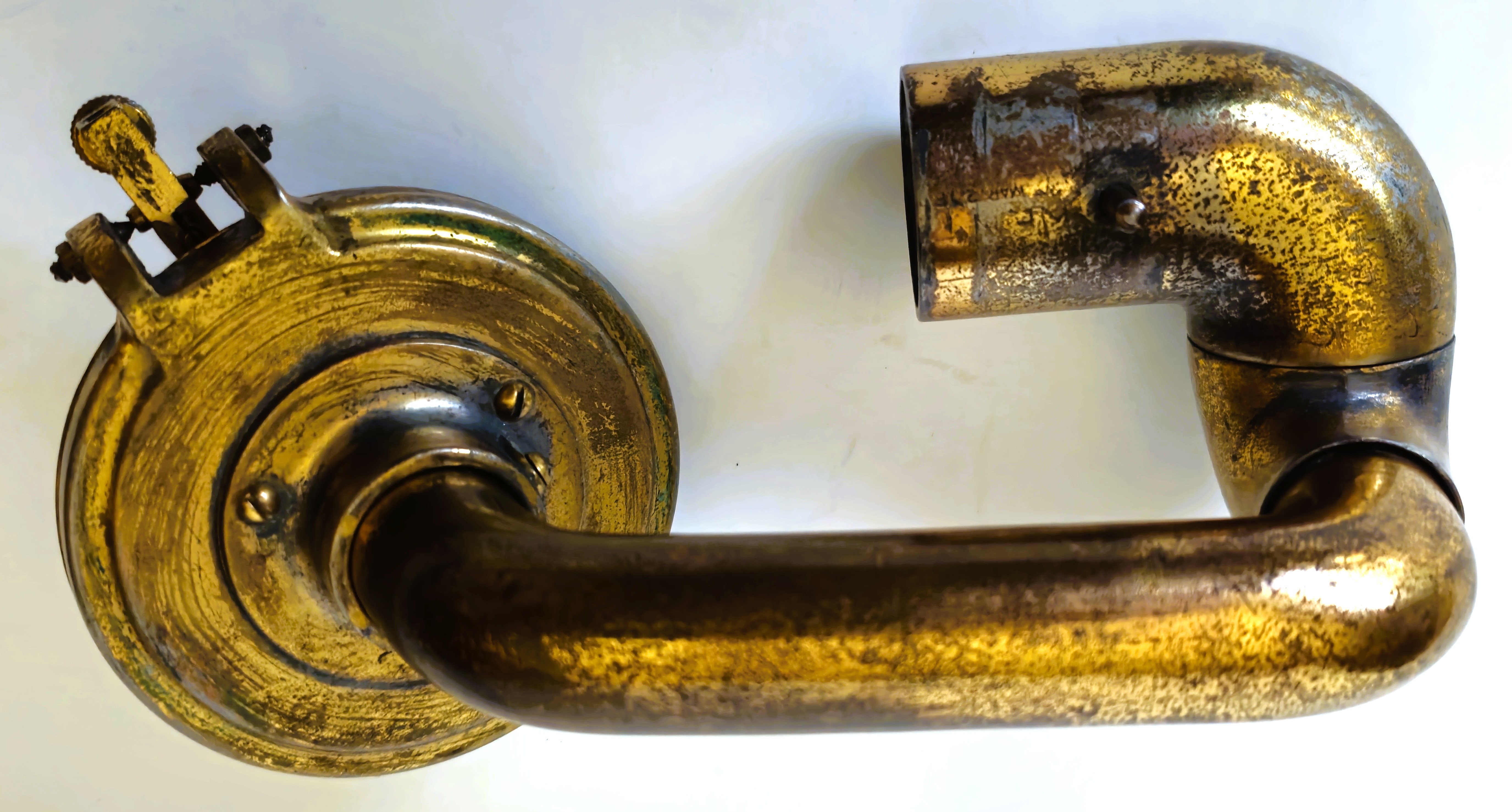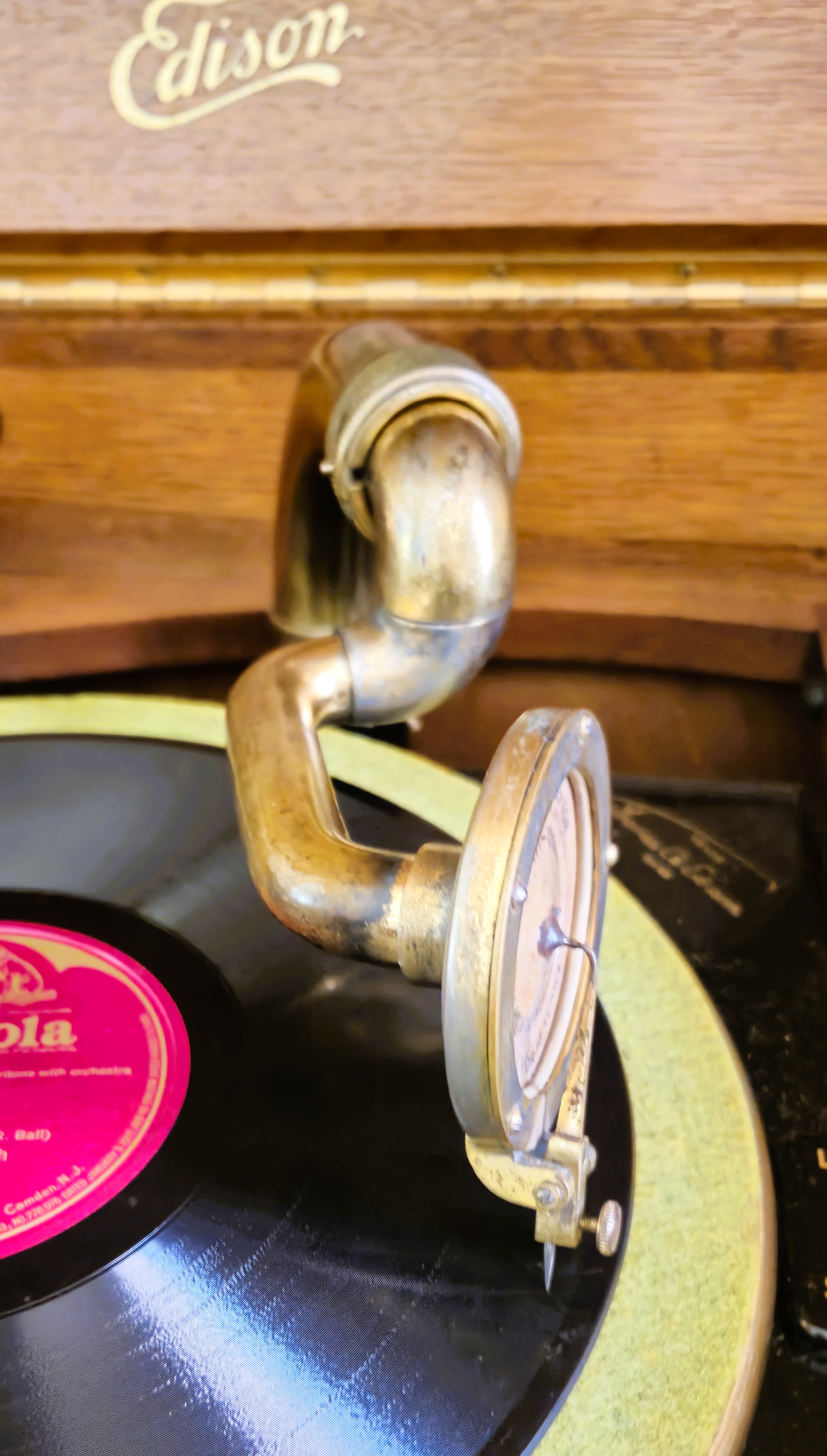 An adapter to allow your Edison Diamond Disc phonograph to play 78rpm lateral cut records. This attachment is similar to the "Kent" style adapter. The swivel joints work freely. The gold color finish is in fair shape with noticeable wear and age spots. The original reproducer with a fiber diaphragm produces a clear smooth tone. Price is $125.00 including shipping to a U.S. address only.