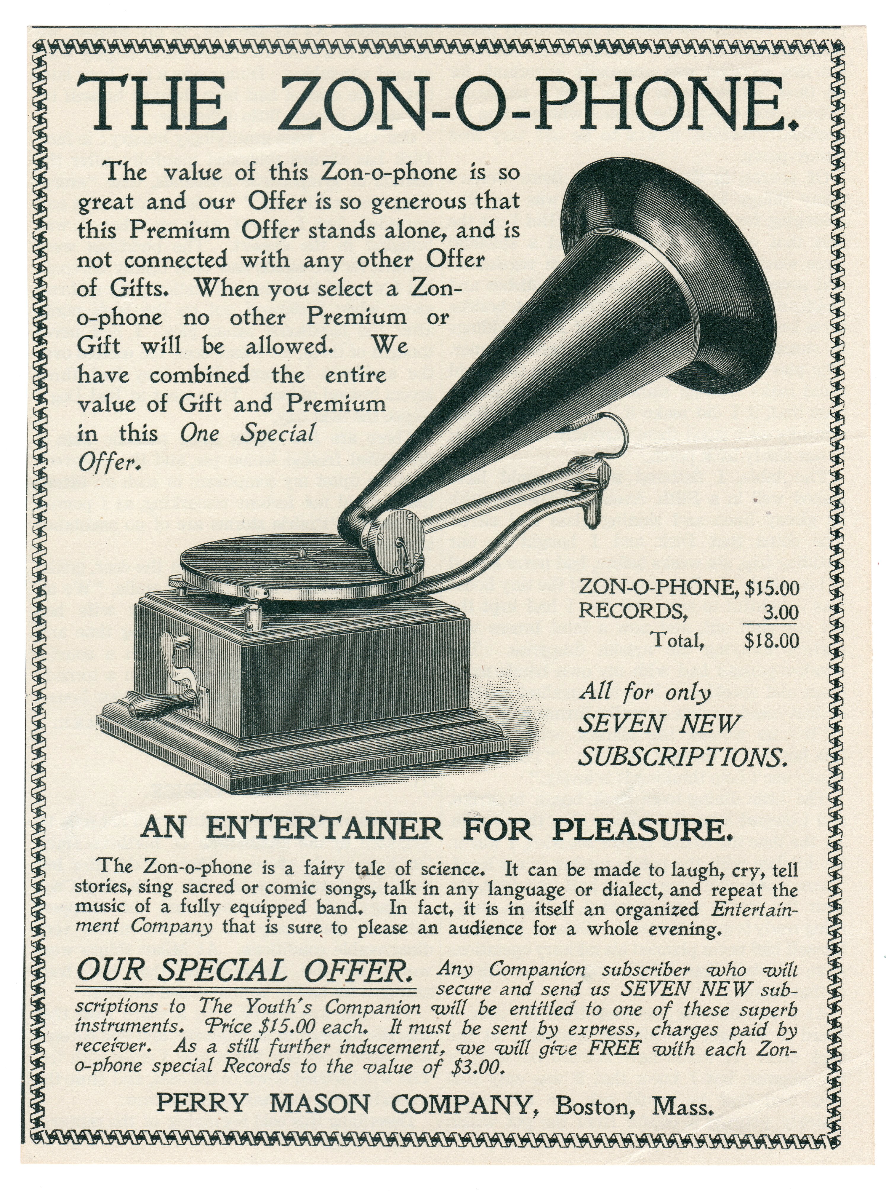 It's interesting that the Zonophone catalogs had the Type D priced at $12.00 rather than the $15.00 claimed by this ad. And check out the angle of the sound box!