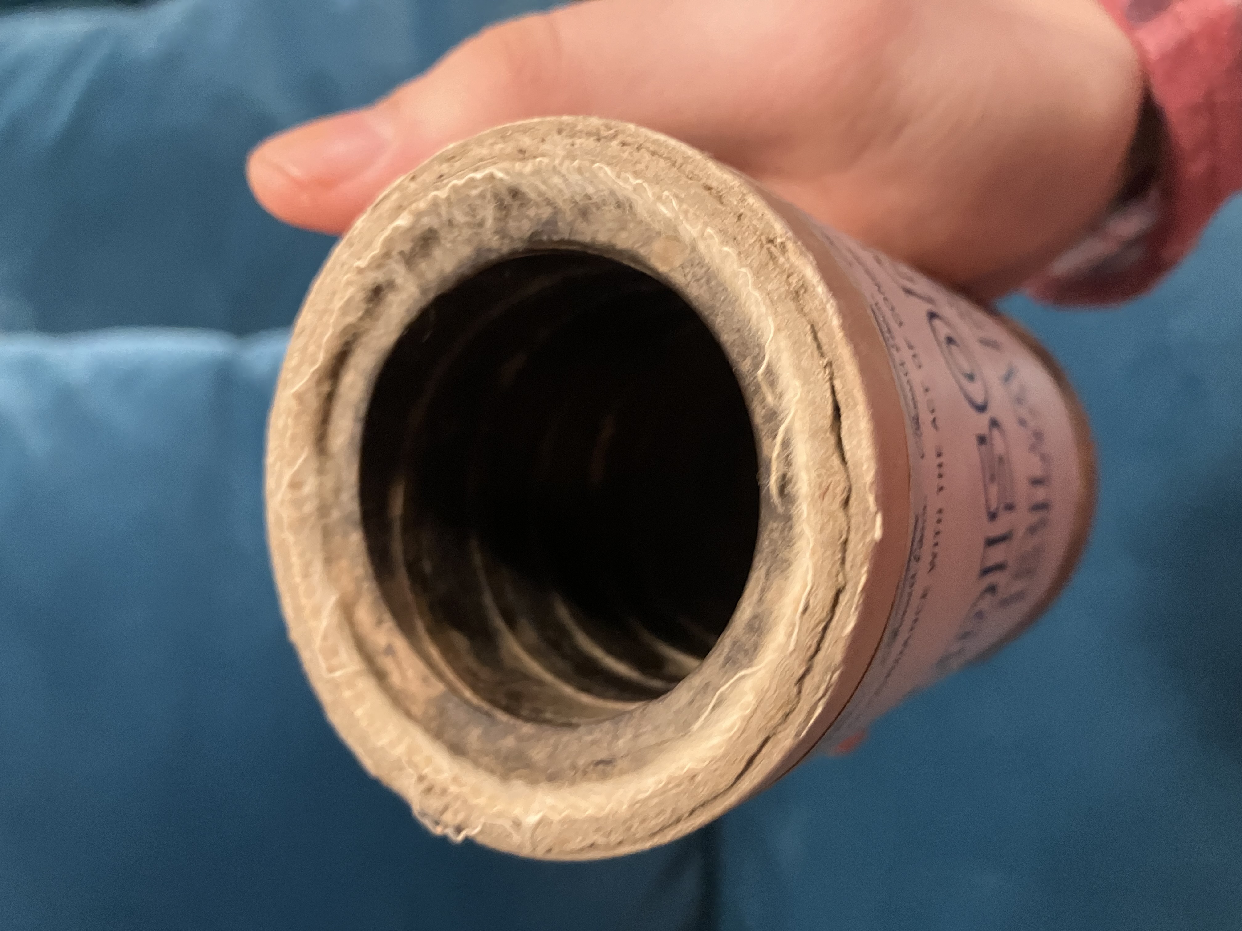 The cylinder is moldy and the fabric lining the carton is stuck to the mold. I'm afraid that once you remove it, you'll find that it's not much good anyway.