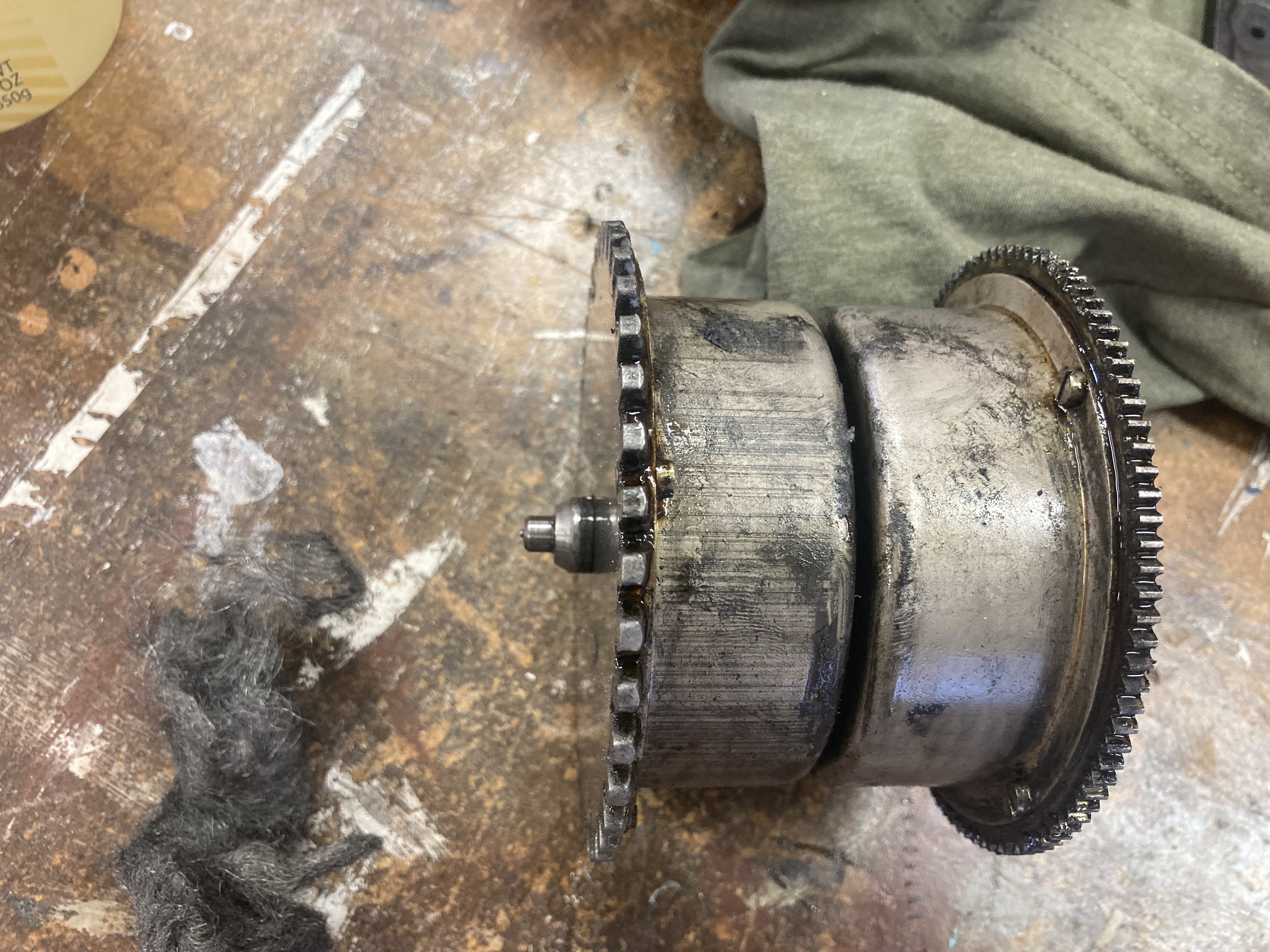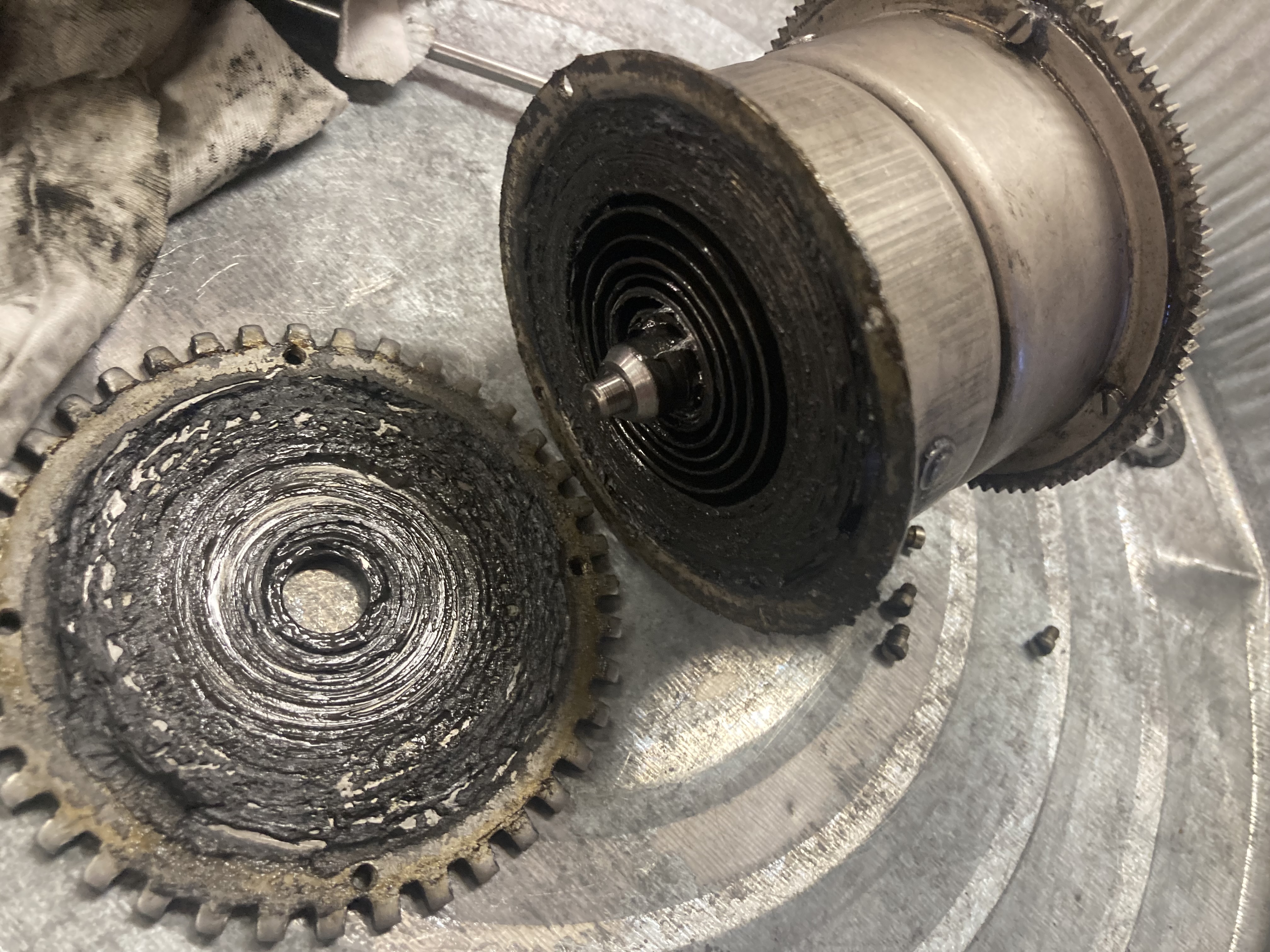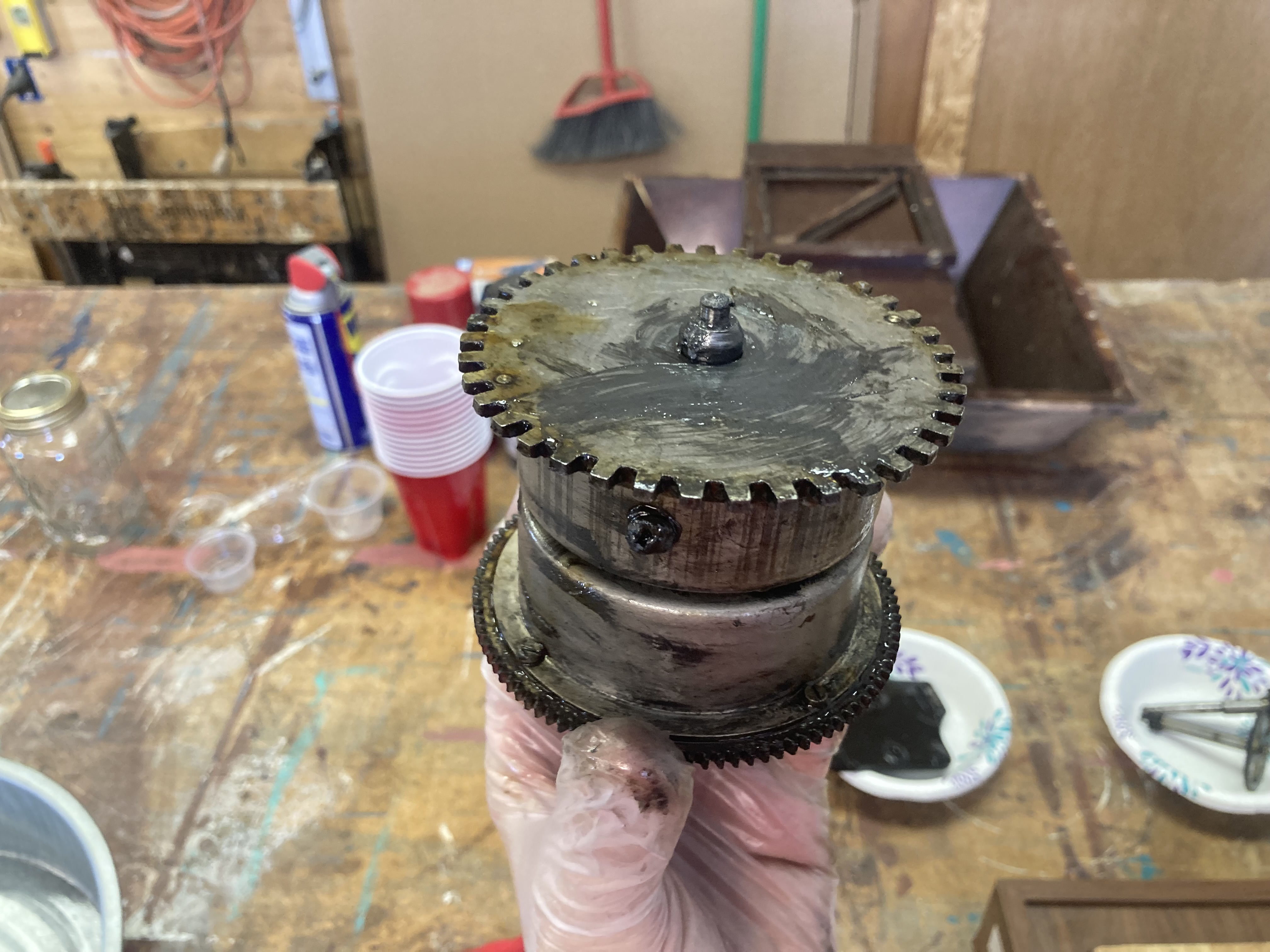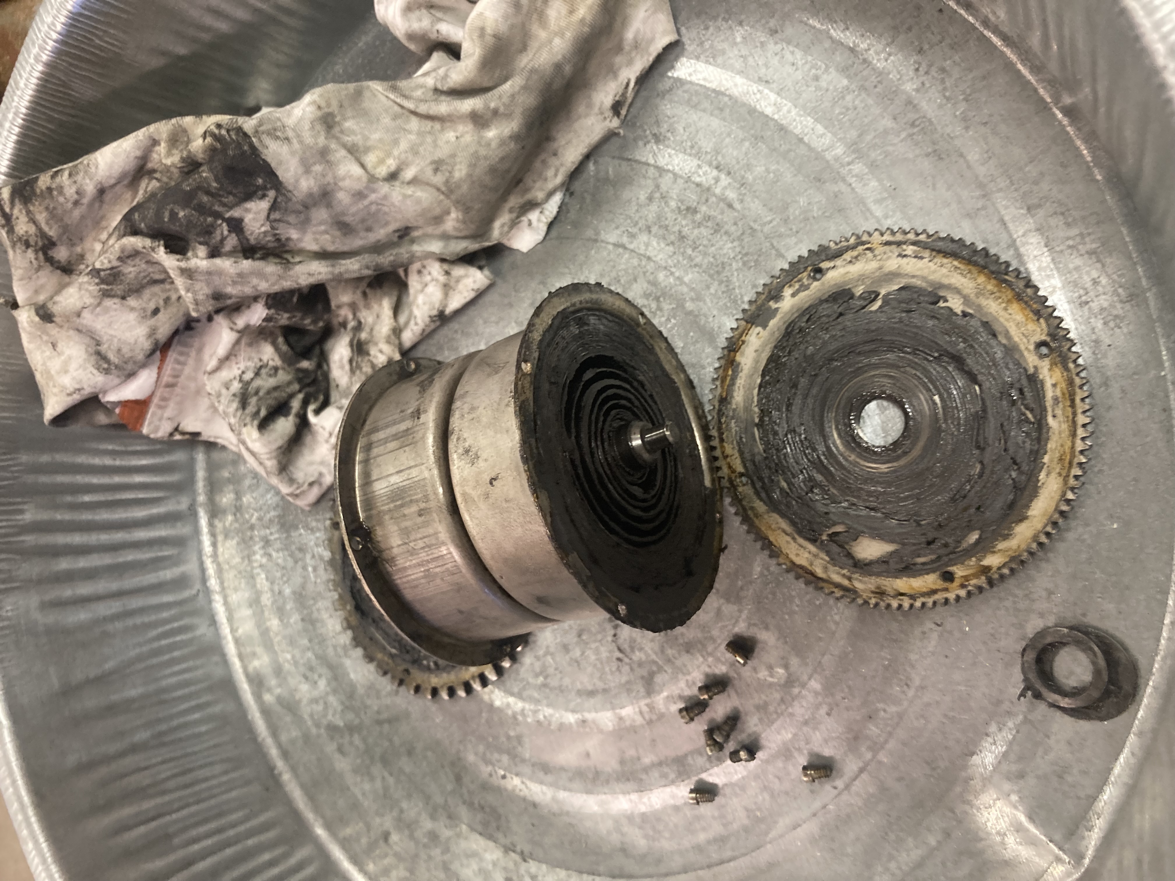 That said, I soaked the whole unit in gasoline long enough that nearly all of the old grease has dissolved out, so if I can just get the two barrels back together properly, that will suffice.