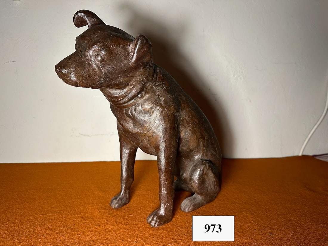 Can anyone identify this nipper? Its cast iron about 12-16 inches tall - its in an antique shop - owner has no provenance but says its 1930ish. I’ve used numerous search engines and can’t find it. Its expensive enough not to just buy it. Thanks