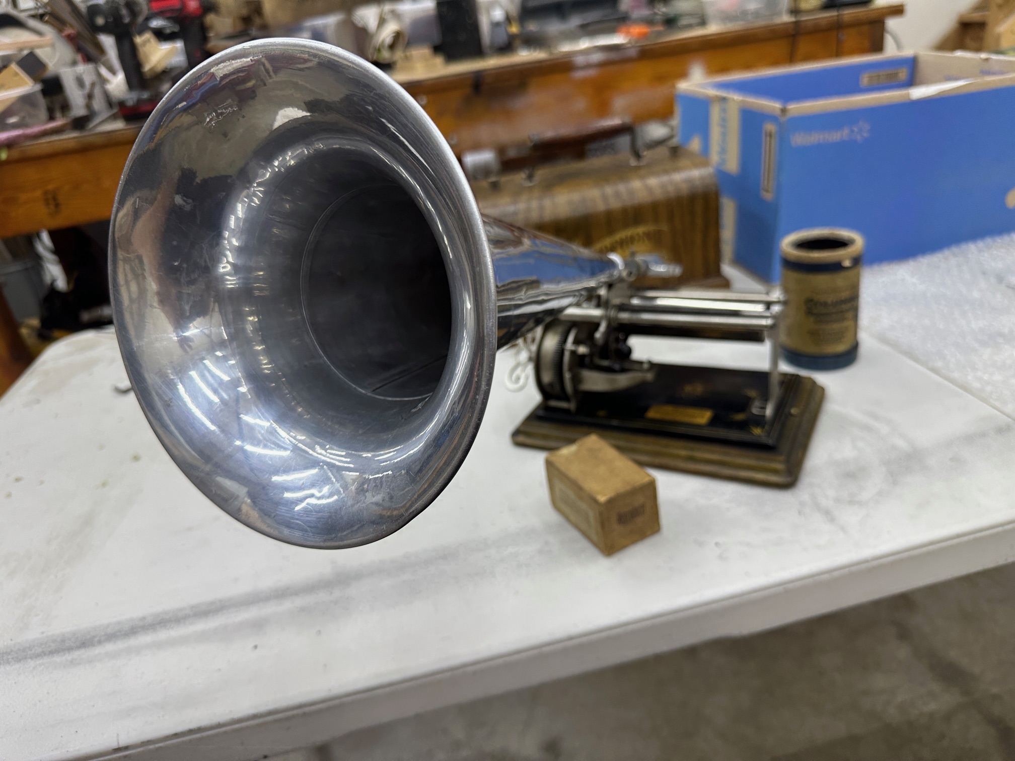 So, I finally bought a nickel plated horn for my Columbia Eagle Phonograph.