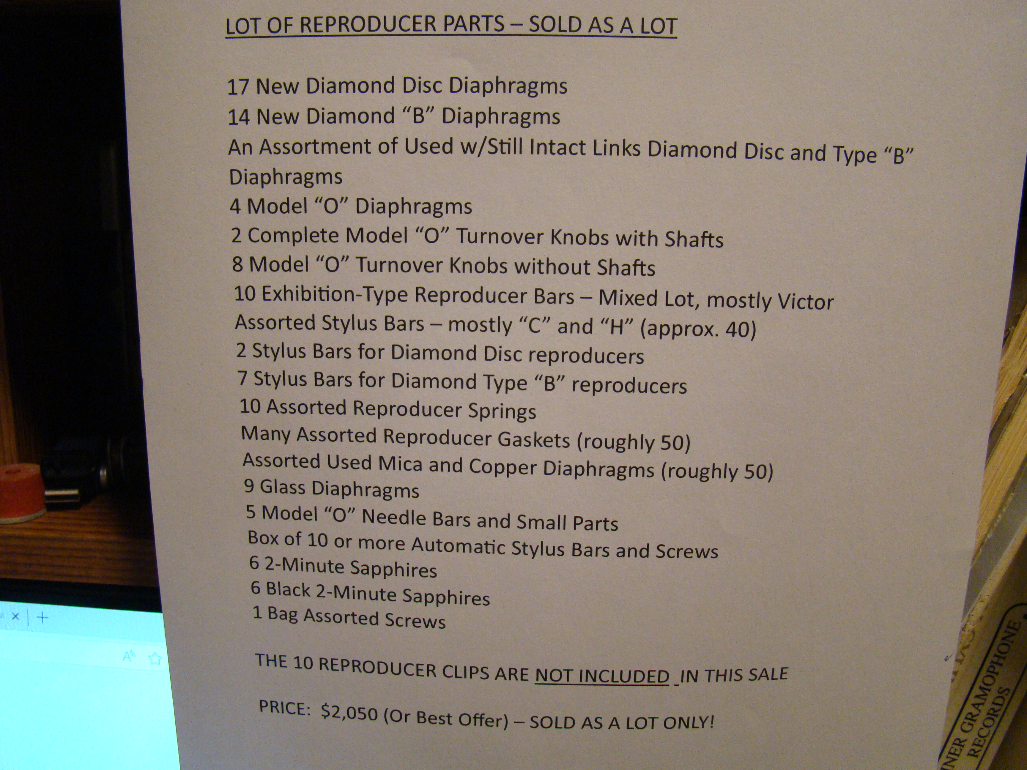 For Sale: Large Lot of Reproducer Parts $1800.00