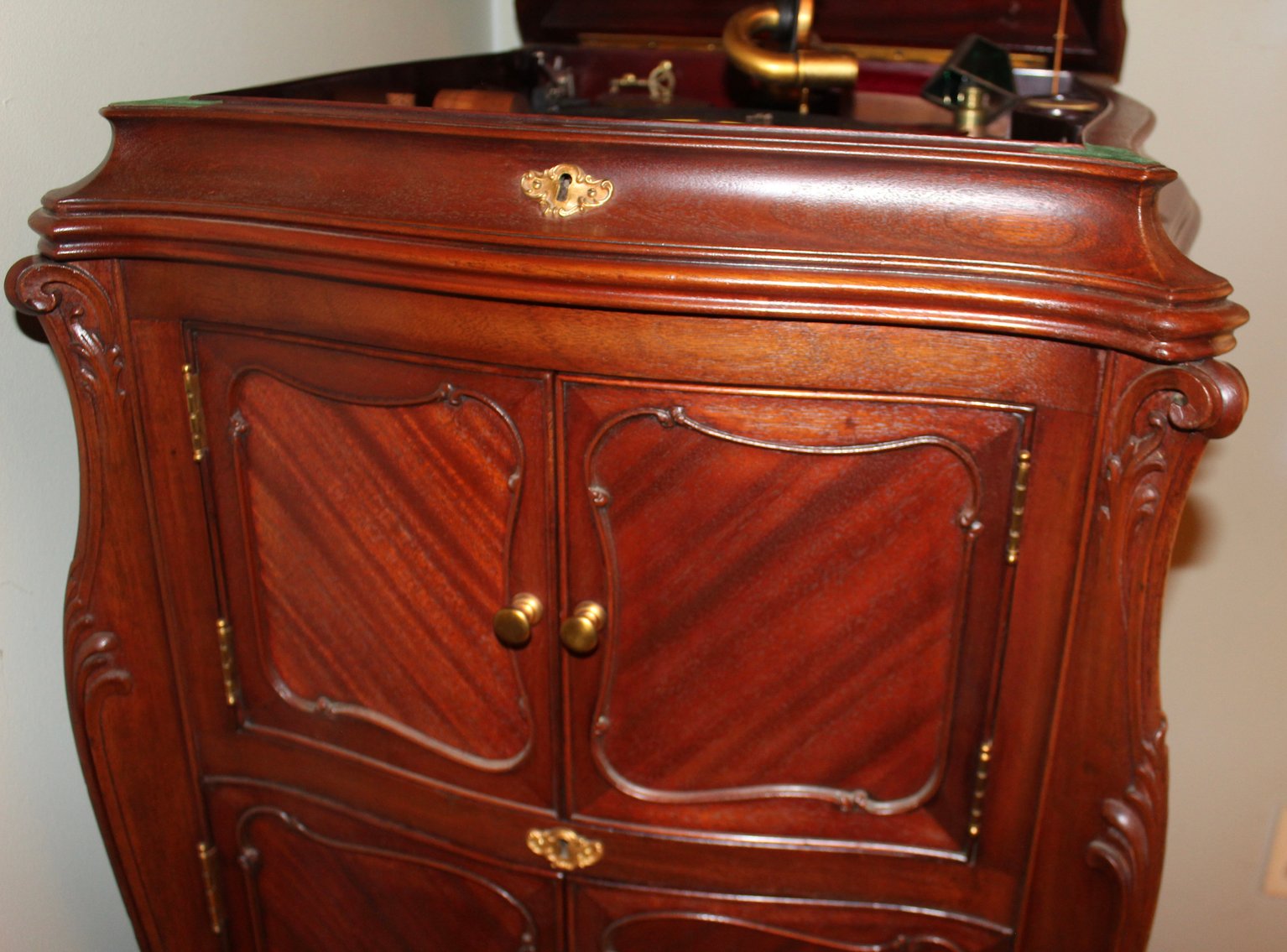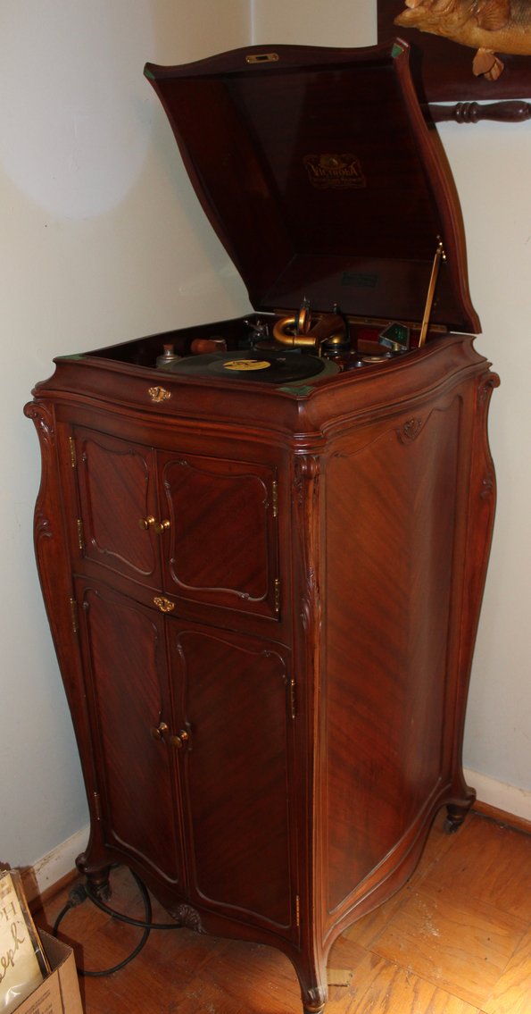Very nice photos. I always wondered what Victor's cabinet factory chose to do with the winding key escutcheon molding on this model. Kinda neat how they gave it a little carving instead of leaving it blank
