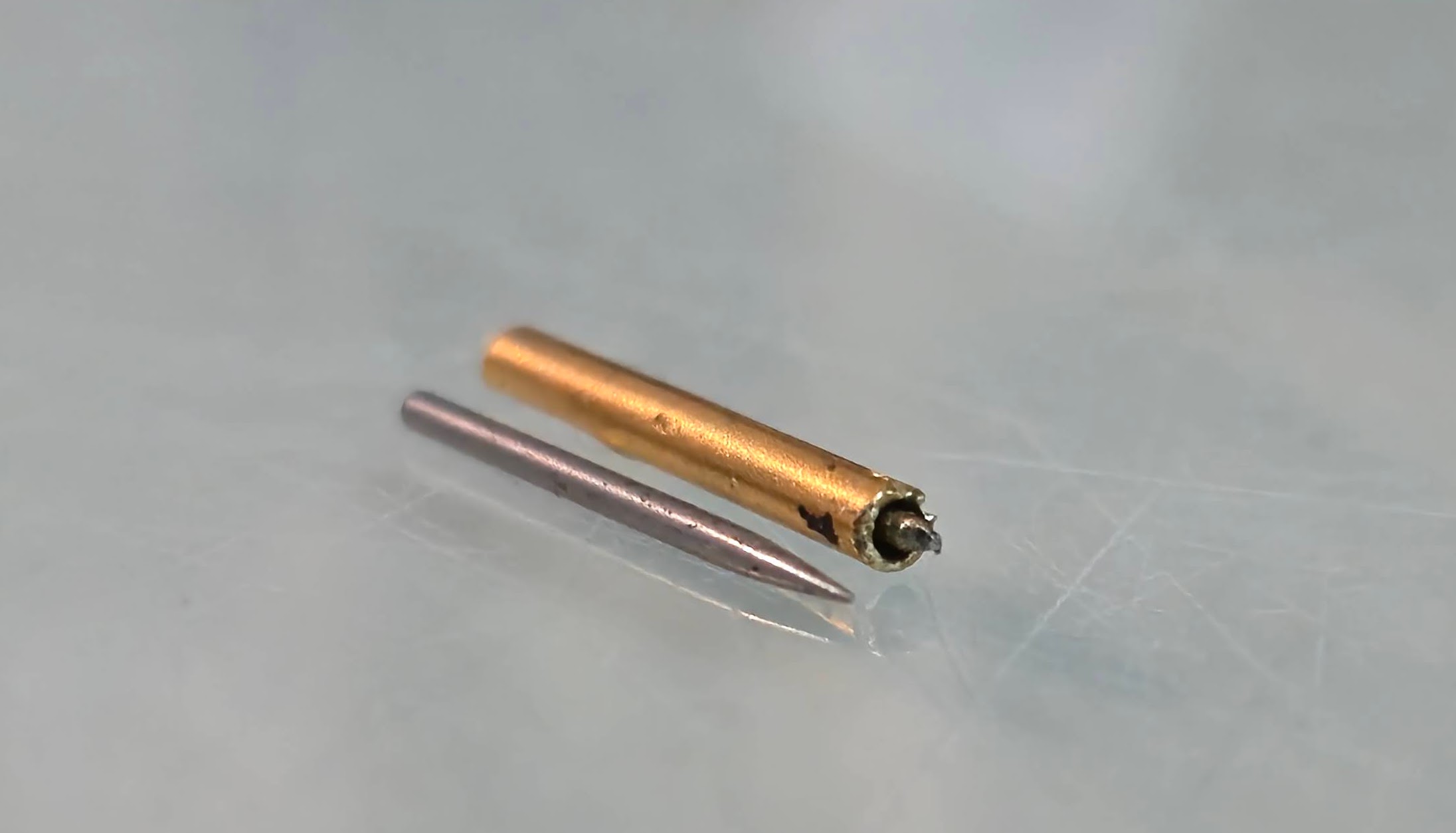 Wondering if my issue is the housing the needle is in. It's a small piece of conduit and increases the overall size. I tried pulling the old needle out with needle nose pliers. Just the very tip of the needle is exposed, but could not get a good grip on it. My plan was to put a new needle in the tube housing. I took side-by-side pictures to show the size difference. No idea where to buy these metal tubes, or if I really need one. Has anyone seen something like this?