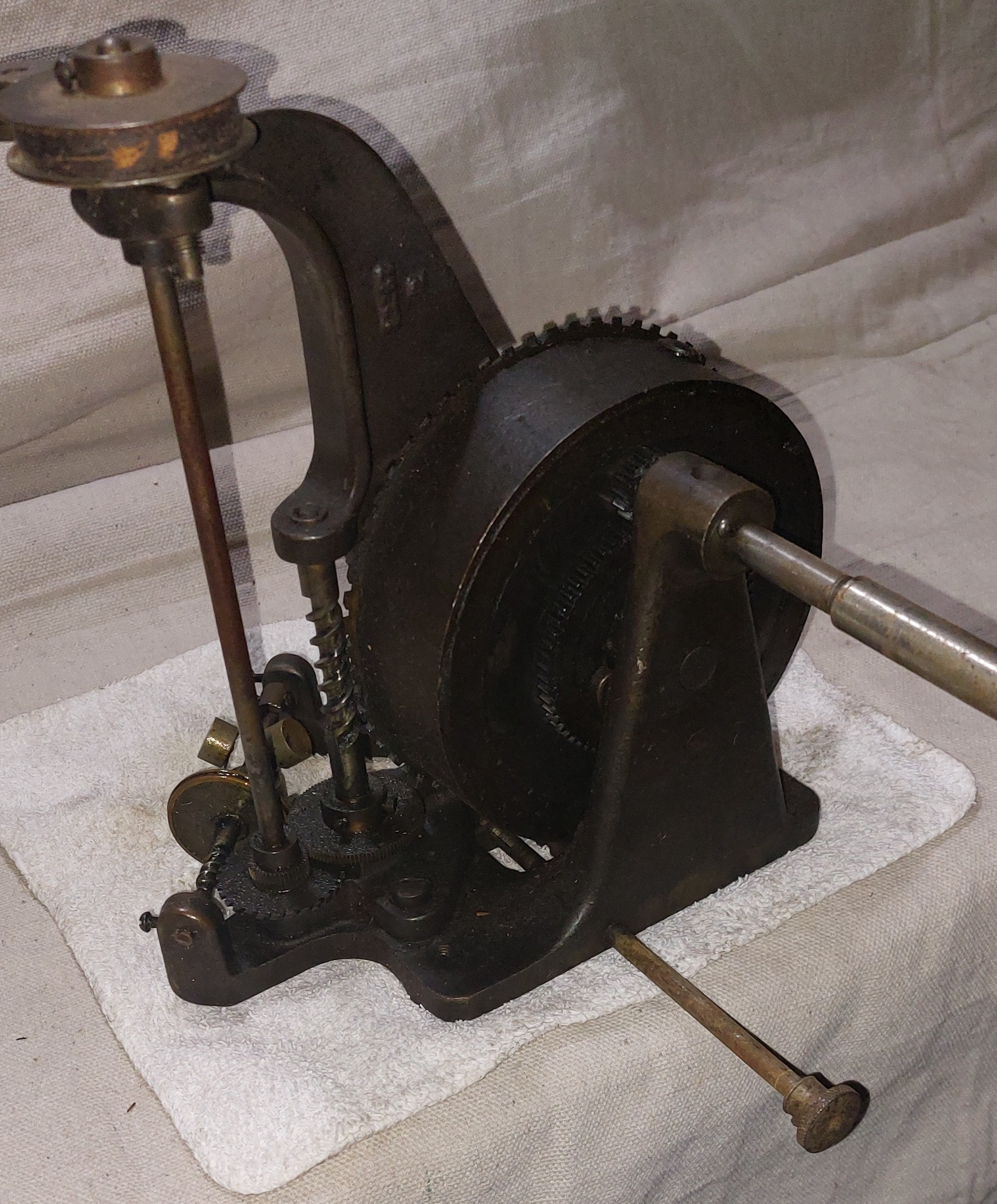 For Sale: This nice original motor was included when I purchased a B-60 a while back and I don't anticipate needing it so offering it in the hopes of helping someone complete and neat early machine. It runs very quiet and includes everything you should need. Belt pulley and take-up, crank (may not be the exact but it works), speed control knob.