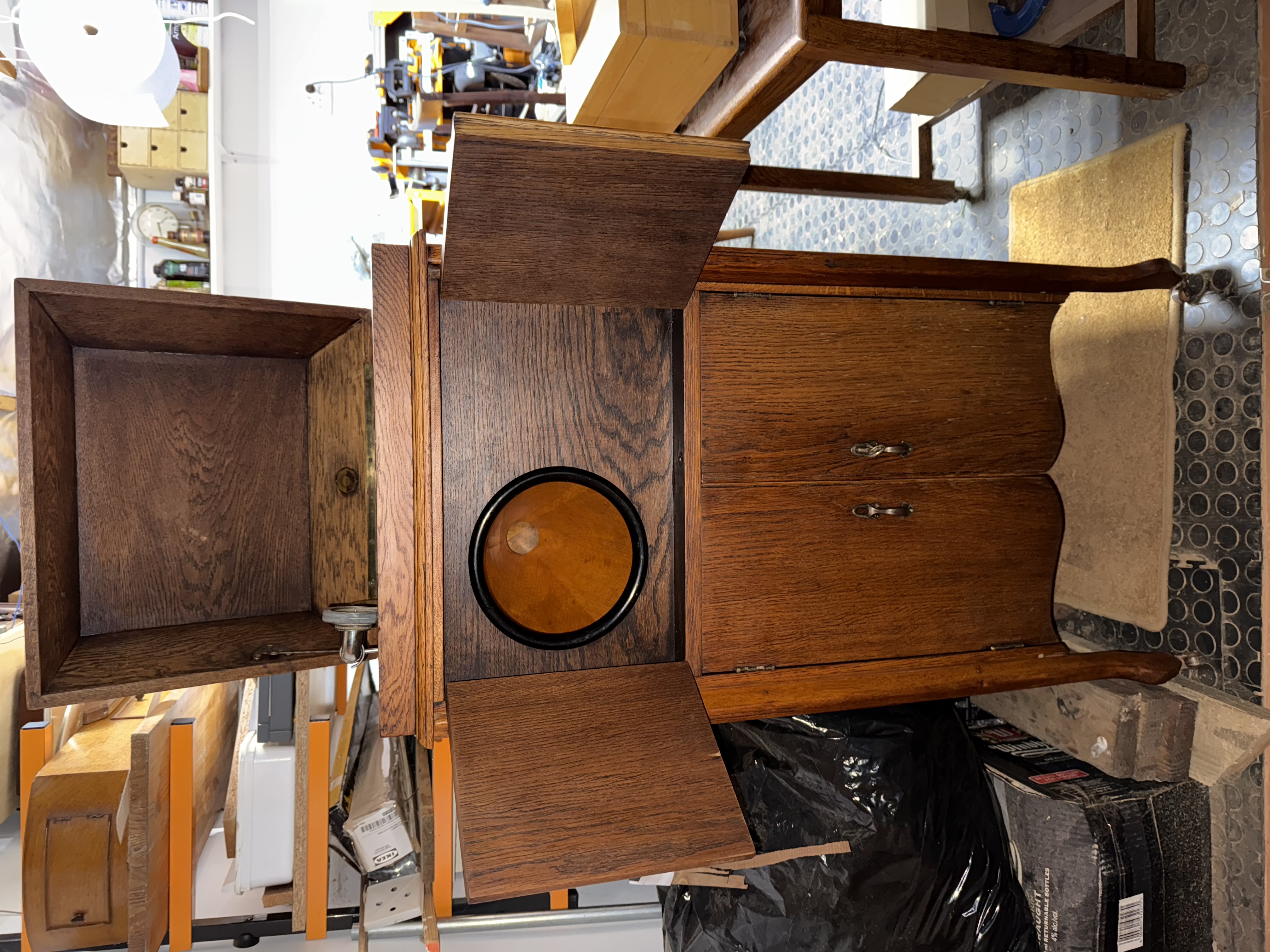 More photos of the inner structure, especially the tonearm-/horn-construction would be great. I have written a detailed answer in English and German about the manufacturer of your upright gramophone in the German forum: https://grammophon-platten.de/e107_plug ... 25220.last
