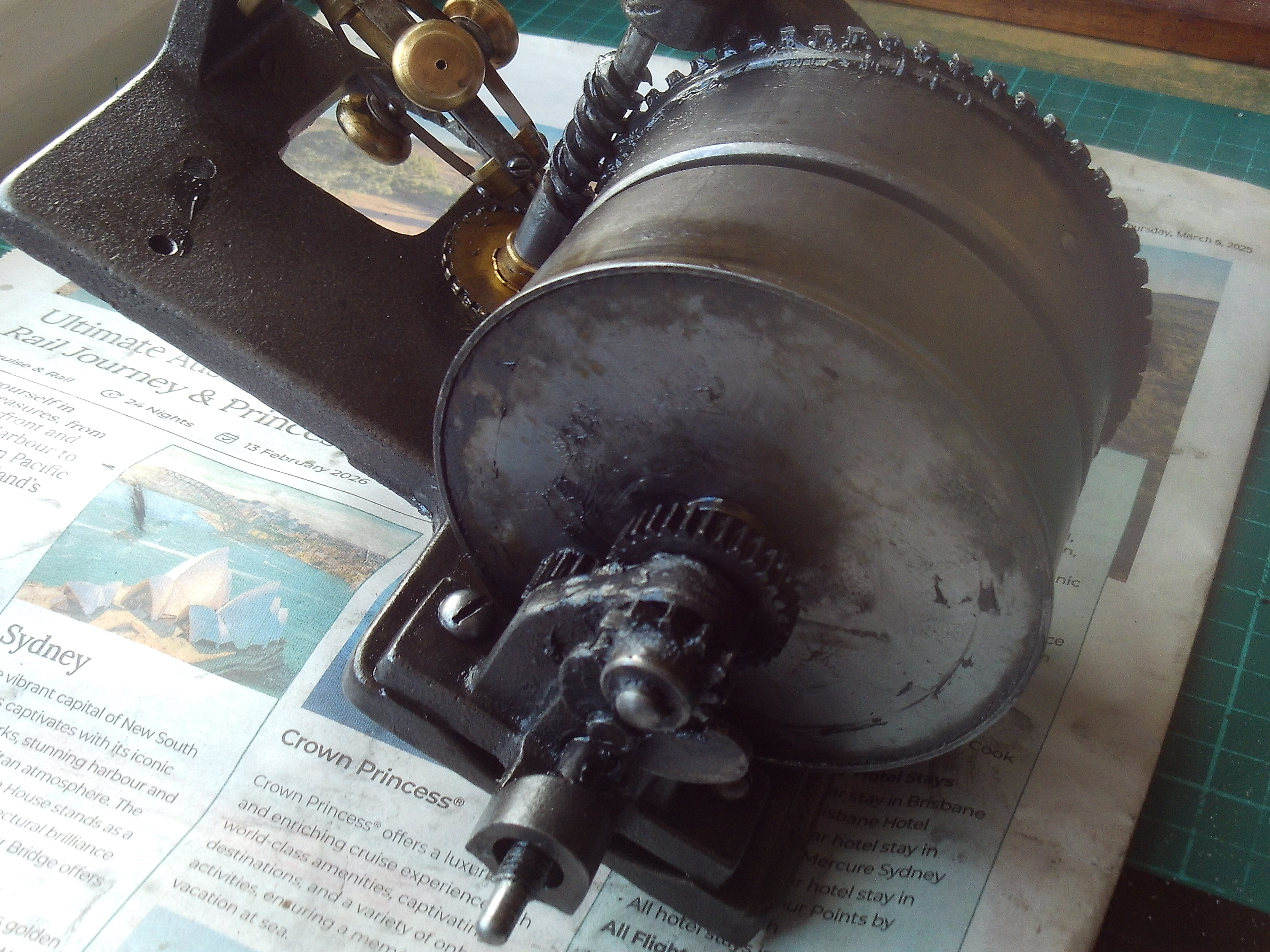 A collector friend is restoring a horn Model 2 of the WW1 period, when from about 1916 they were fitted with a double spring worm drive motor and an Exhibition Junior soundbox.
