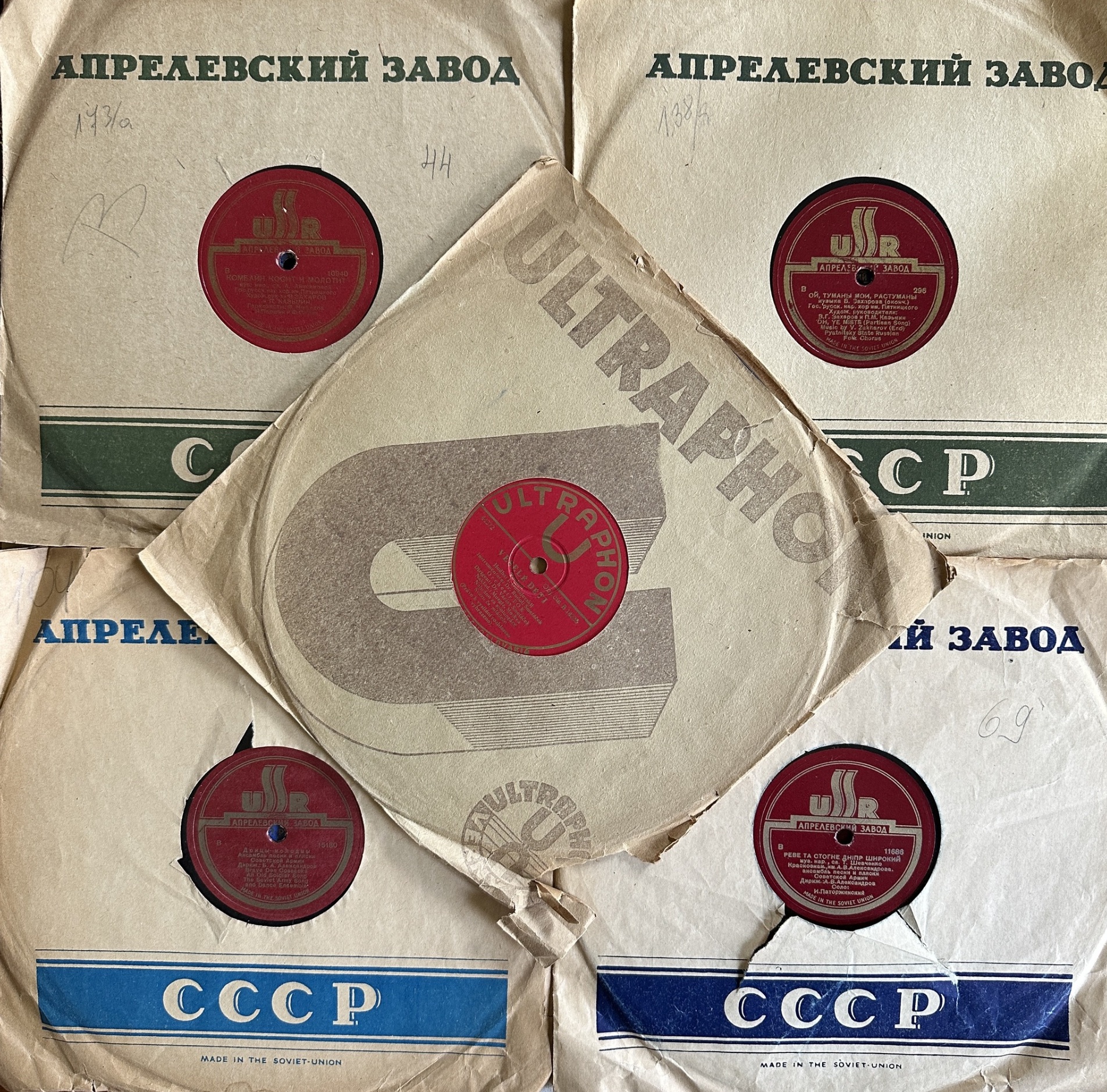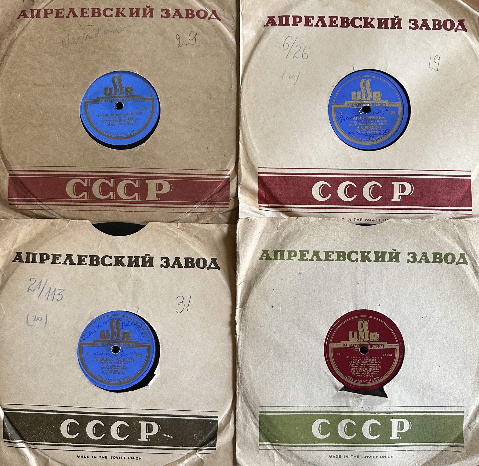 I won't be putting these on my player (I played a couple, not my particular area of interest), I offer them here as a group to anyone who collects these sorts of things. All discs are in EX shape as they appear to have been sleeved all their lives except for one disc which seems to have taken a hit. A triangle broke off of it and I was able to superglue it back into place and play the disc with only ticks occurring during the first ⅓ of the song. All others appear to have been minimally played, if at all. All come with what appears to be their original sleeve except for the HMV (which is in a Spanish language version of an old Columbia sleeve?).