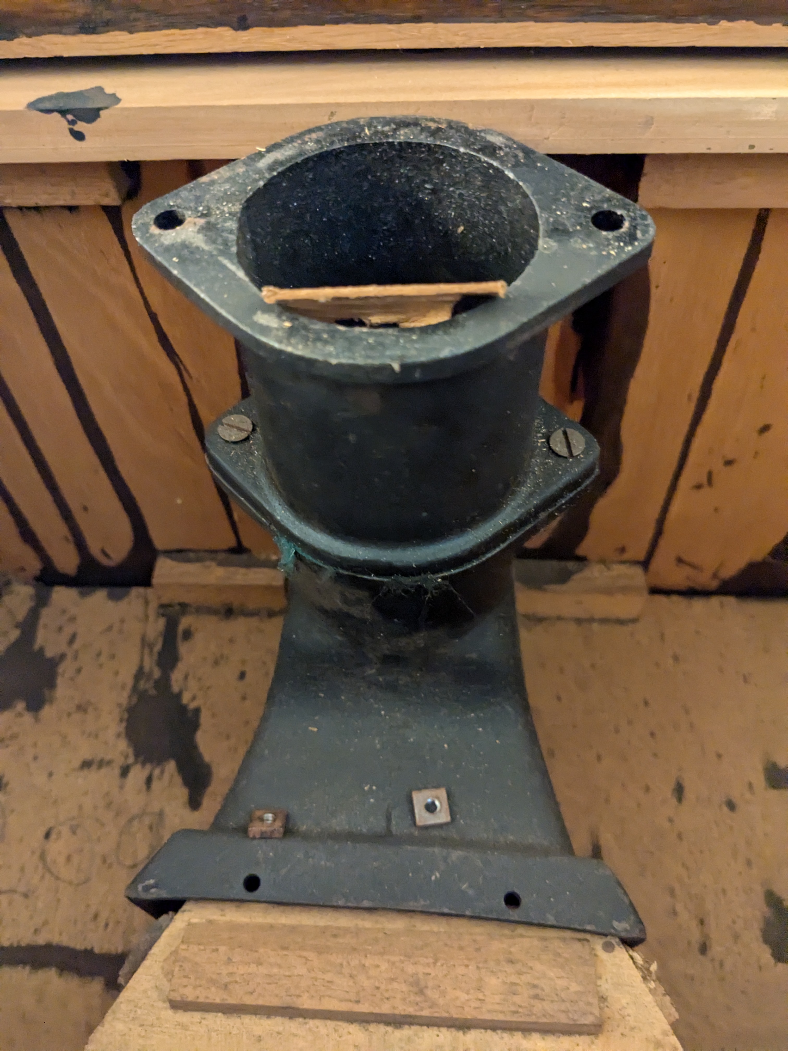 The plain oak cabinet is basic and unbranded. It could be the work of an amateur, built from a plan in a hobbies magazine. Mechanical components were readily available from wholesalers to complete such home made machines.