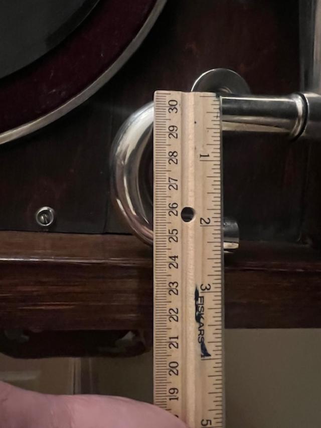 I am posting this in this forum because I have a friend who just acquired the gramophone seen in the photos. After careful inspection, there are no markings to indicate the manufacturer. I thought it might be a Gilbert, but I am thinking now that it may be a Mellophone. When he opened the unit, he found a tag around the underside of the tone arm that said King Ltd. 42 Coswell Rd. E.C. He is eager to know the make of the unit but, more importantly, there was no reproducer when acquired the unit and he wants to know what kind of reproducer he needs and where he can find it. The L-shaped slot was crudely cut into it to accept an HMV Exhibition, I surmise. Photos and information are below. Can anyone help?