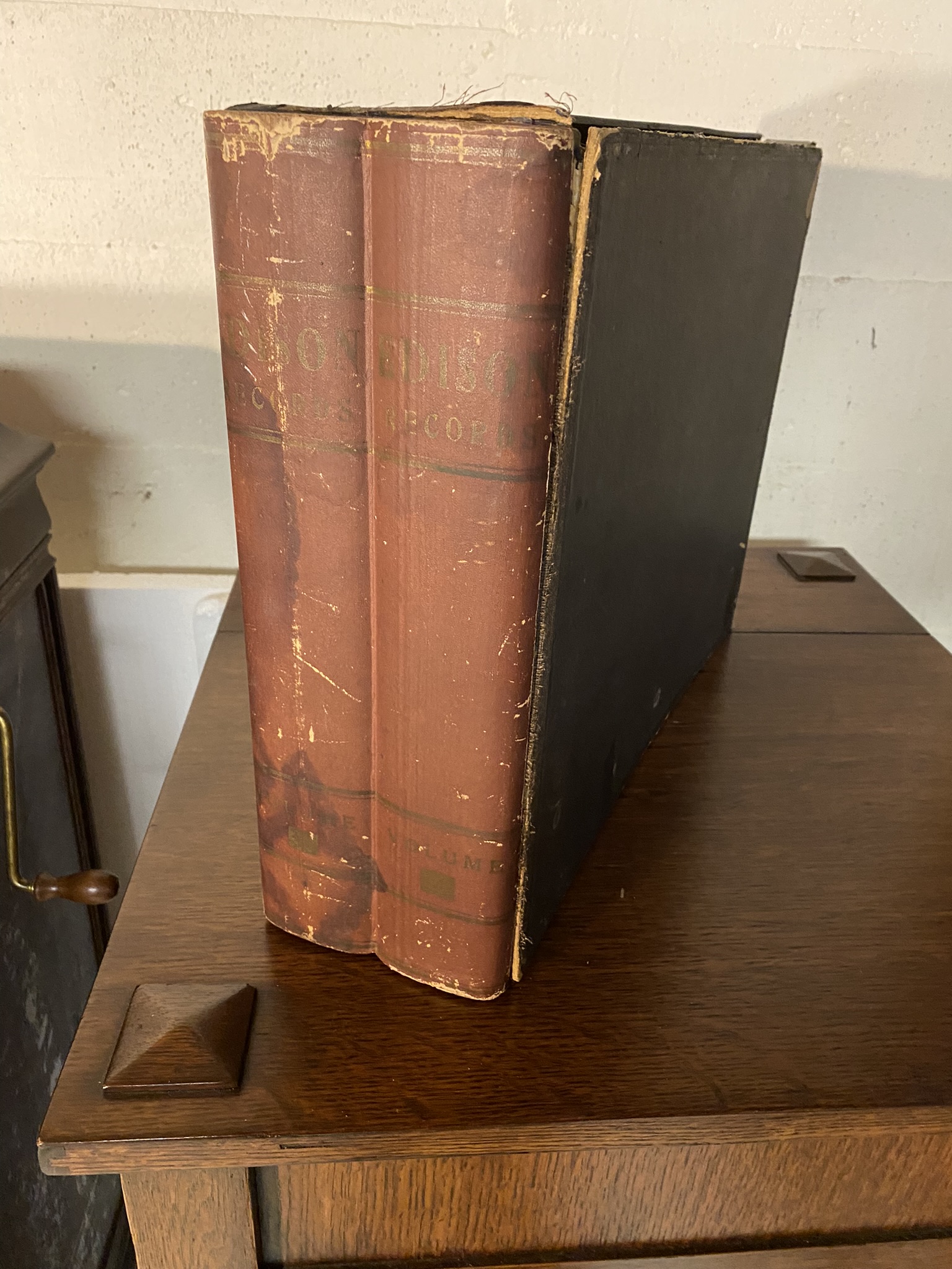 There are two styles of these that I have seen. I have three of them that on the spine say Simply "Records". Those are presented in the first pics. The spine is made of wood and covered with cloth. The side opens up to reveal the records storage.uncle-jimmy wrote: Sun May 25, 2025 5:09 pm Does anyone have a photo of what these boxes look like on the Inside? And how are they configured to house cylinder records?