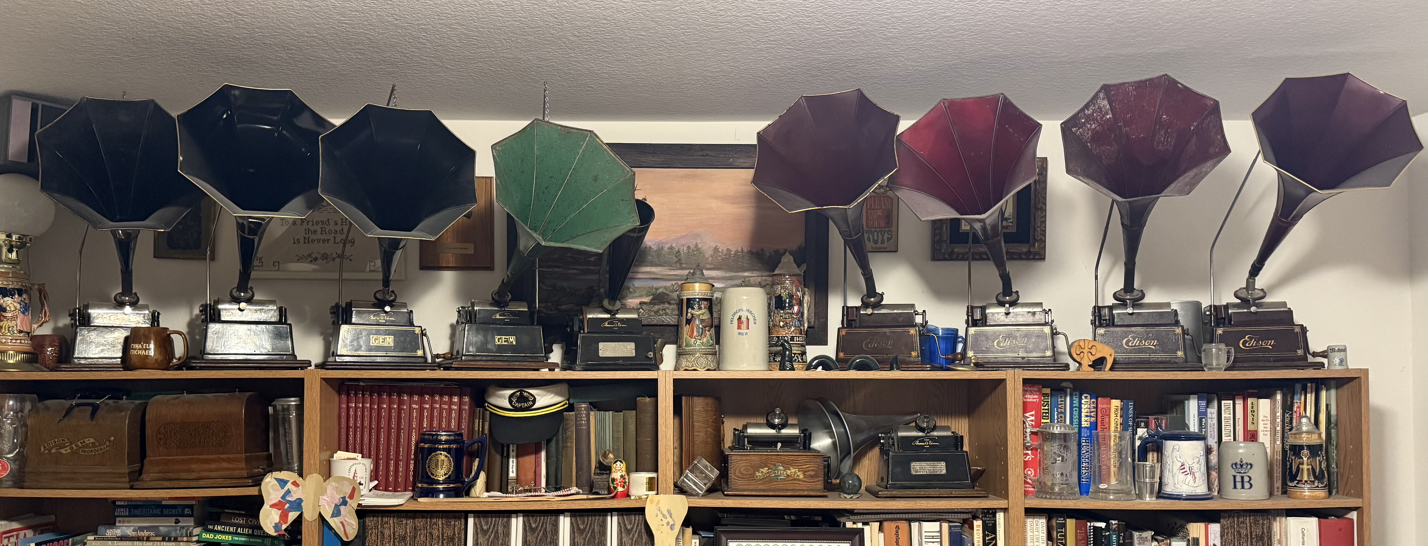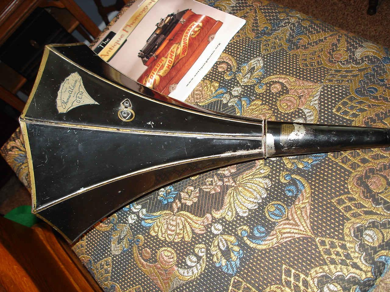 Hey Bob, certainly!Pathé Logical wrote: Fri Jun 06, 2025 7:57 pm Sonicfeather --- can we please see better pictures of your "repro Gem picnic horn (the short one, which I hear is very rare)"? Your horn looks like a common, black, eight-panel, Edison Gem horn. What is different about yours that makes it rare? I've never heard the term "picnic horn" either. What does that term denote, and can you provide a picture of an original? Thank you for any insight about this horn you can provide!