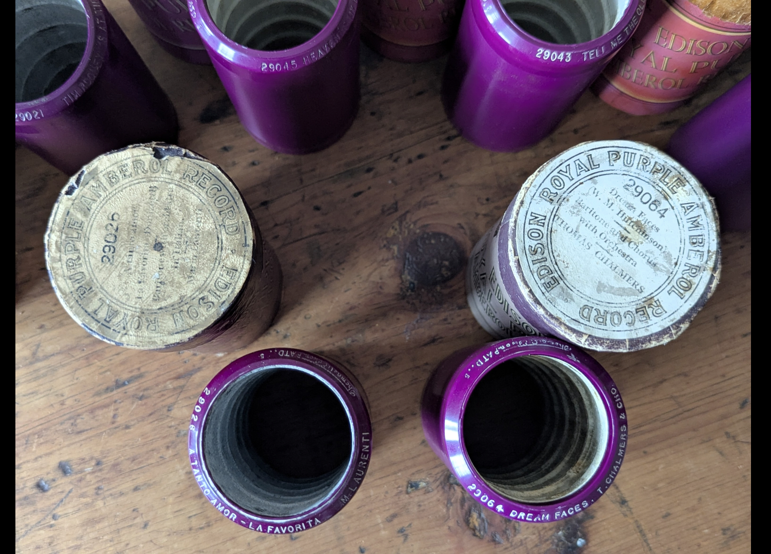 I just wanted to note that the box at the far left with the Edison signature is not a Royal Purple box. It's from the Concert series of wax Amberols and is a fairly uncommon box.