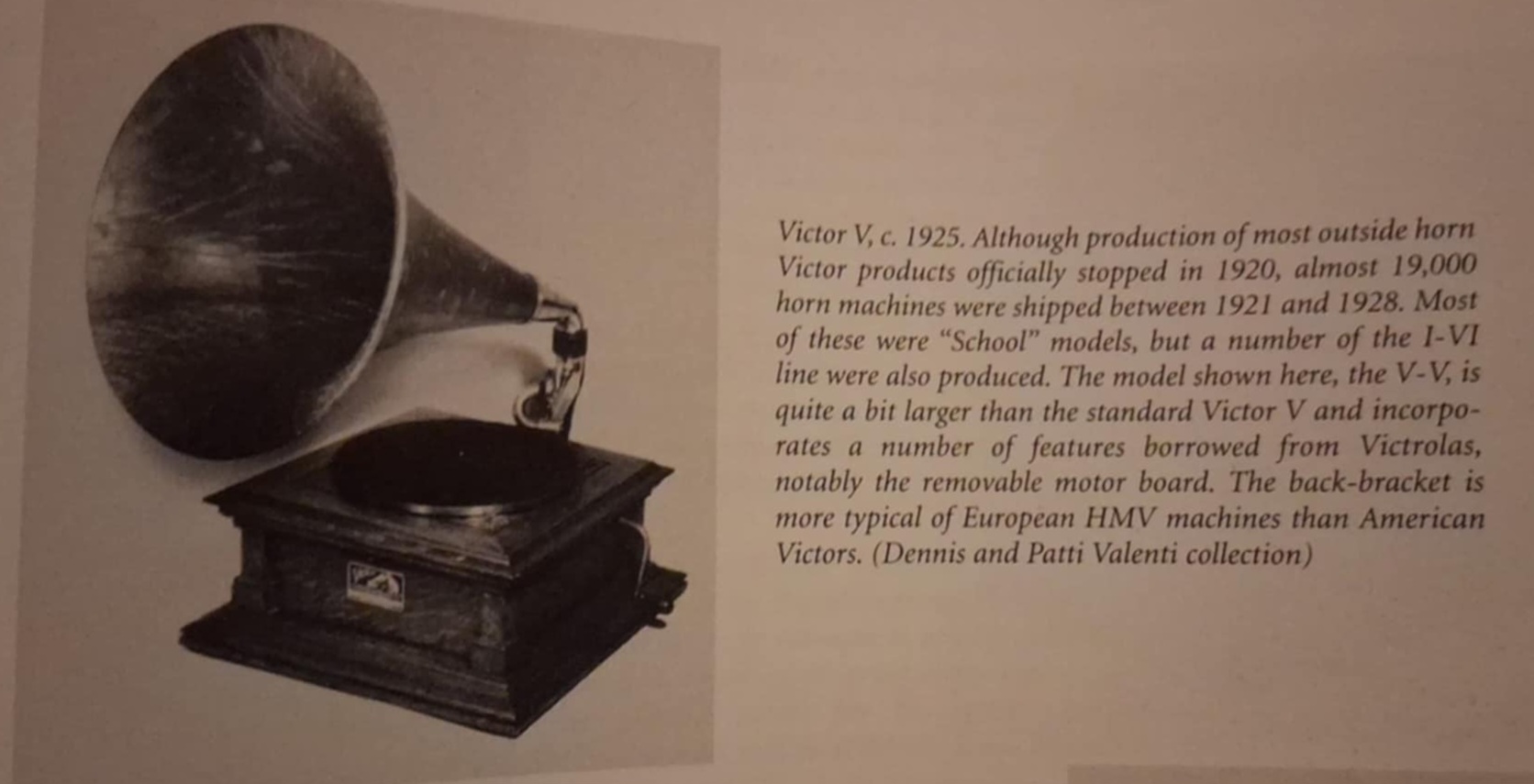 I have a friend looking for a late Victor V-V. This is a very late version of the victor V. The case is much larger than a typical V and has a full, removable motor board as was used in a victrola and has a four spring motor. He is willing to pay top dollar for a machine in excellent condition. Please contact Stephen Noll at 314 287 1901