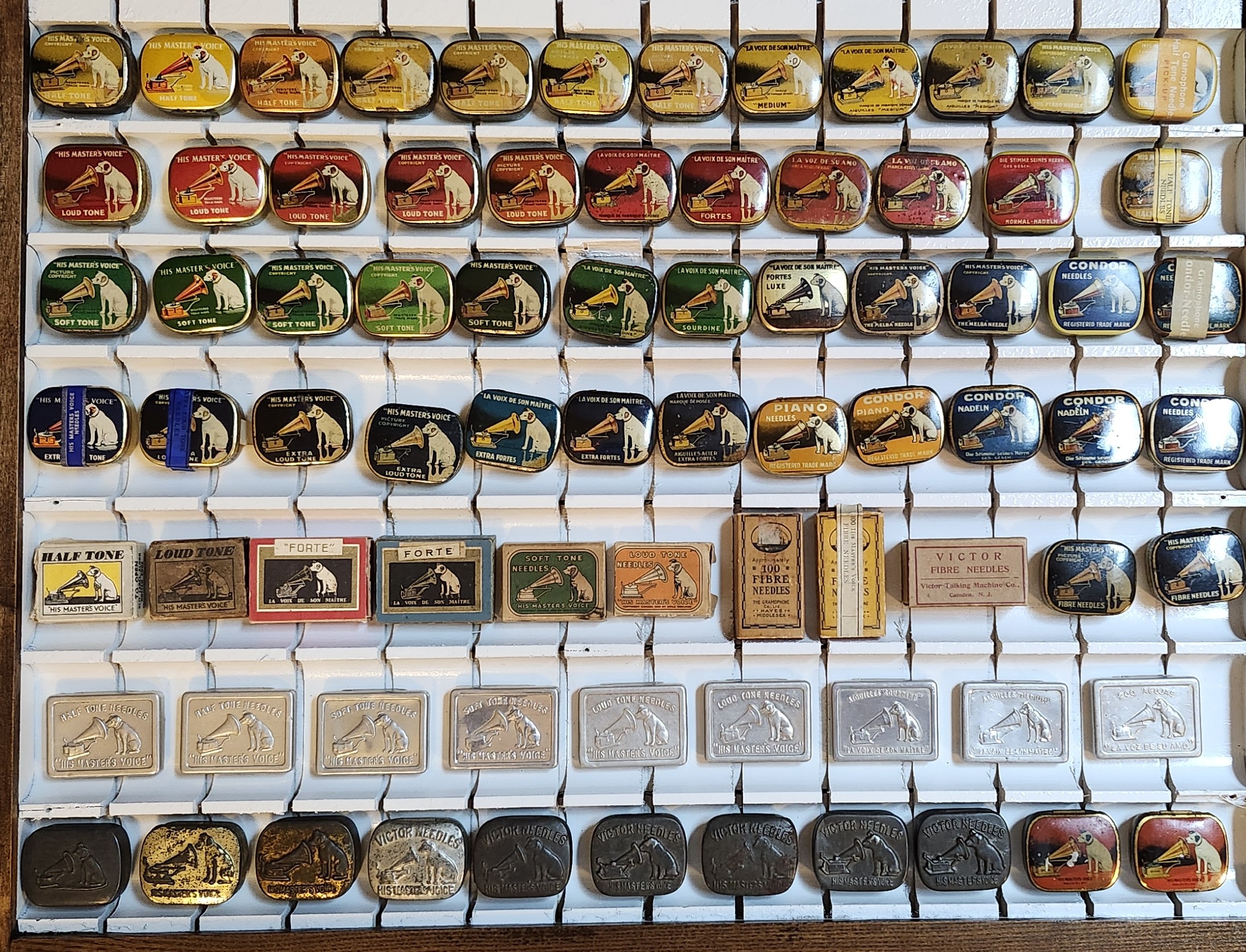 Here are many variations of smaller size Victor needles tins. Each slightly different, or in different languages.