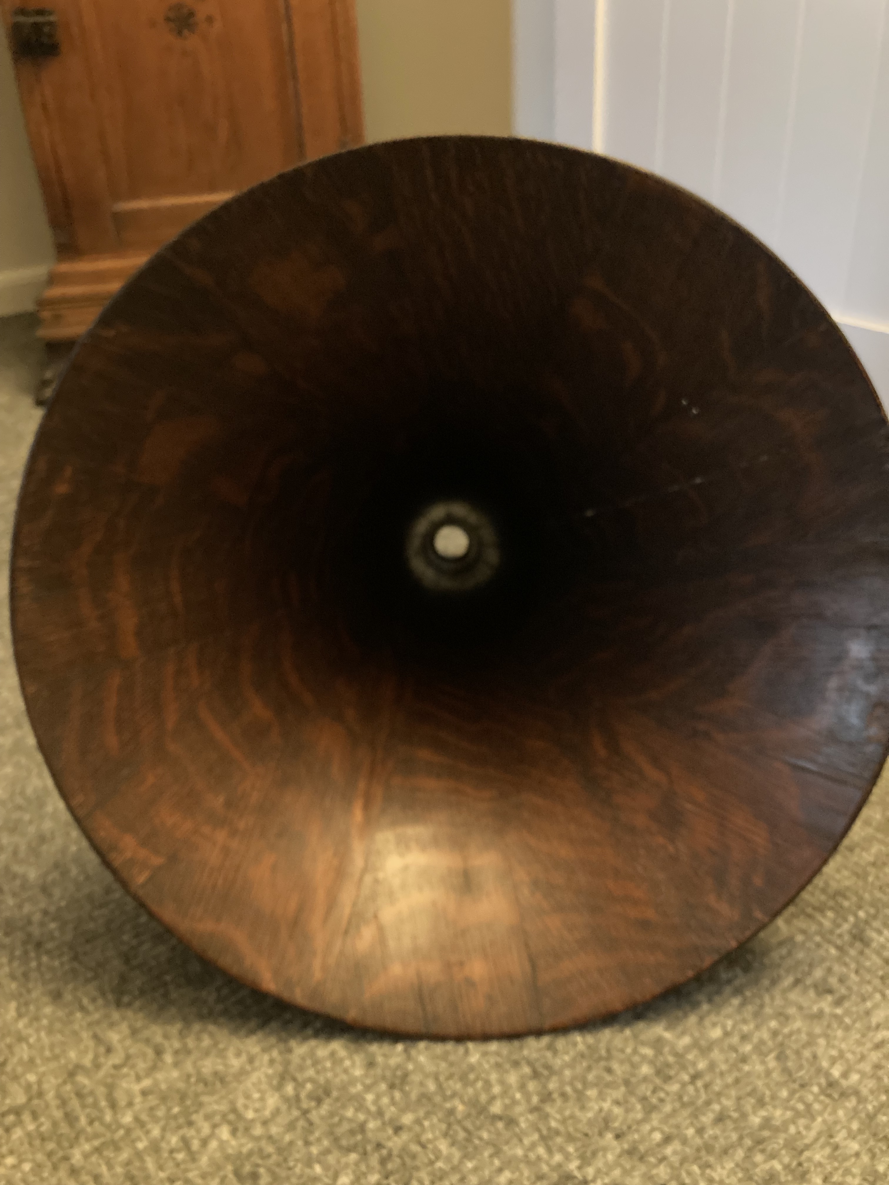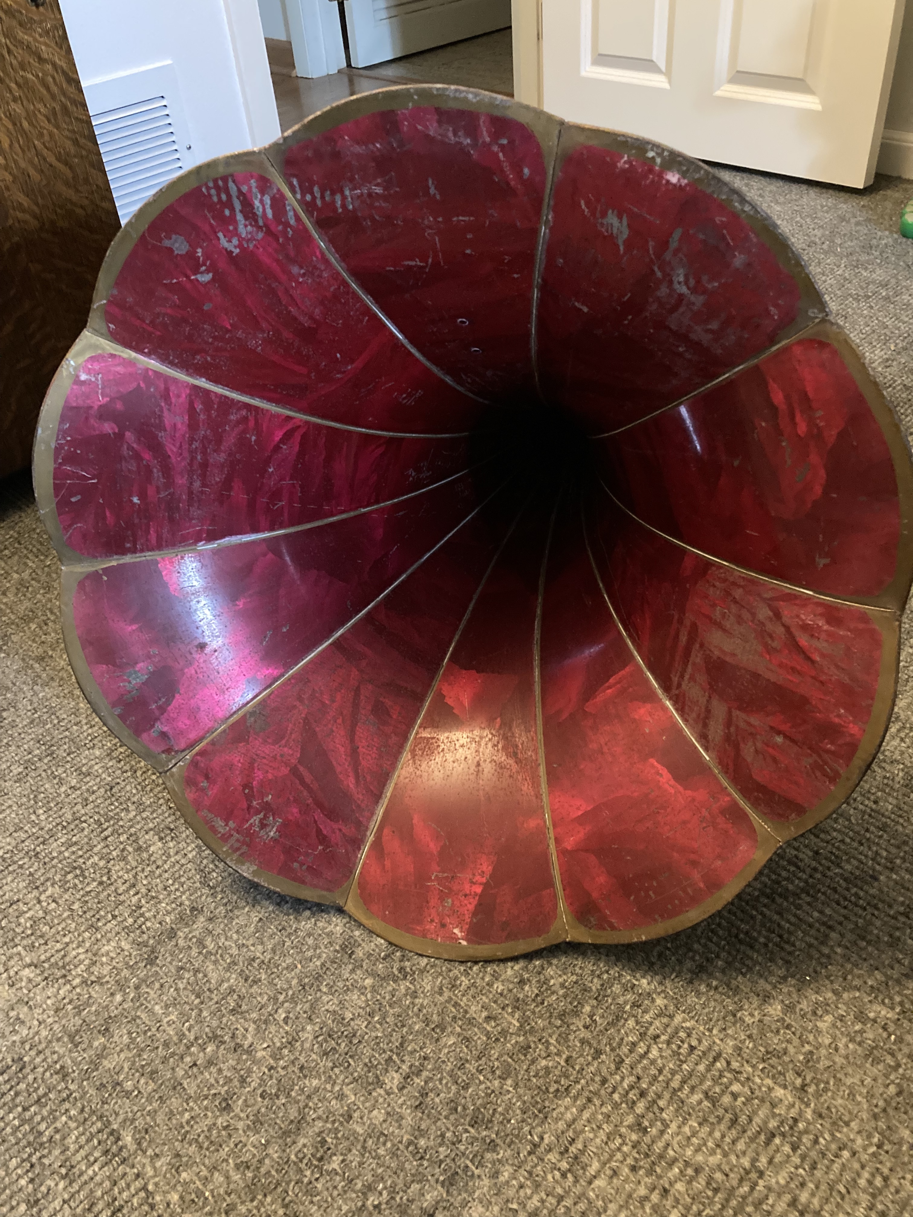 First: H&S cylinder phonograph horn. Partial original label present. Nice color. asking $75