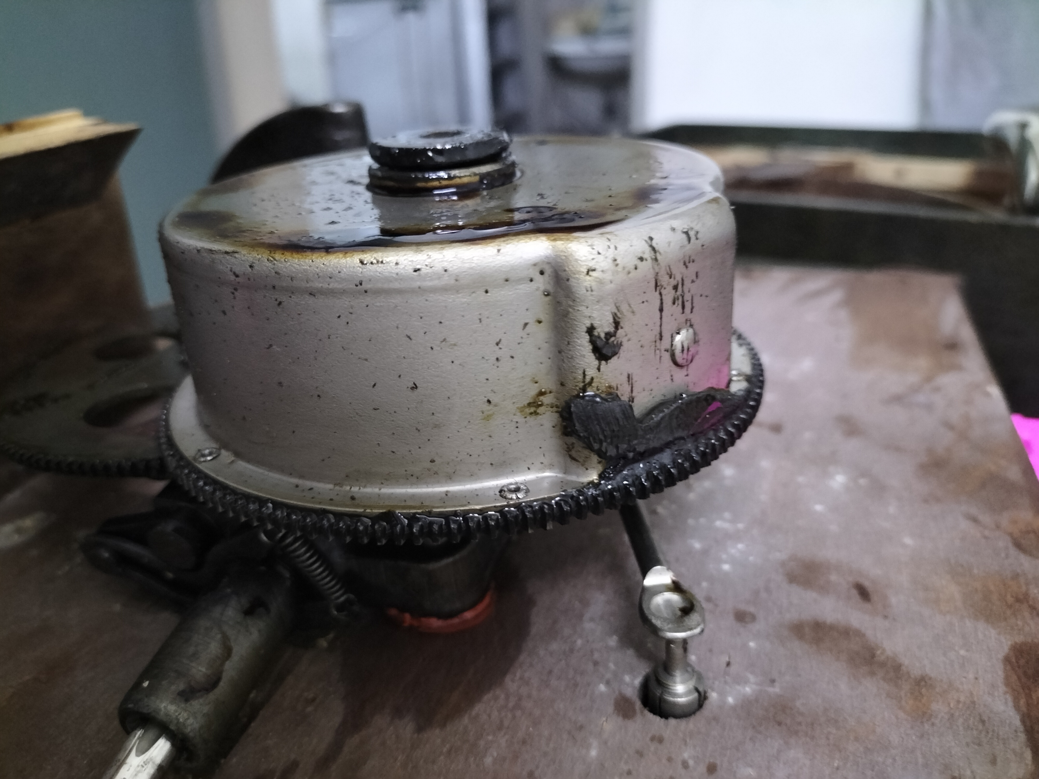 But there is one more serious headache, the motor will sometime bump and thump. I have taken the motor out (without removing it from the motor board) and my quick observation is that the spring barrel is riveted.