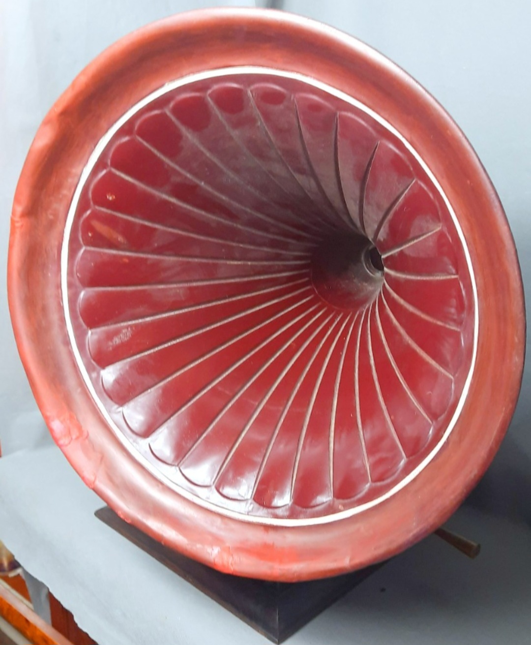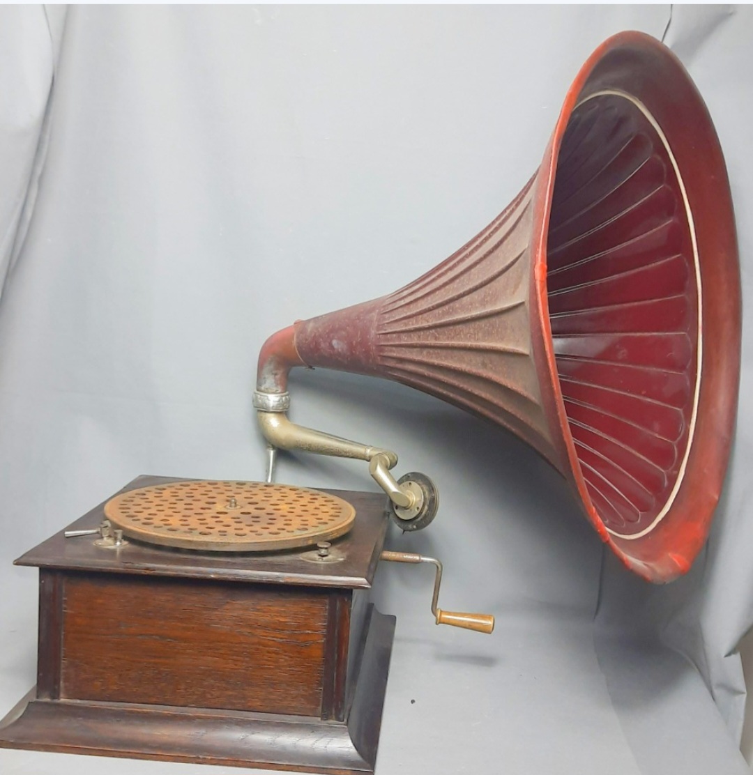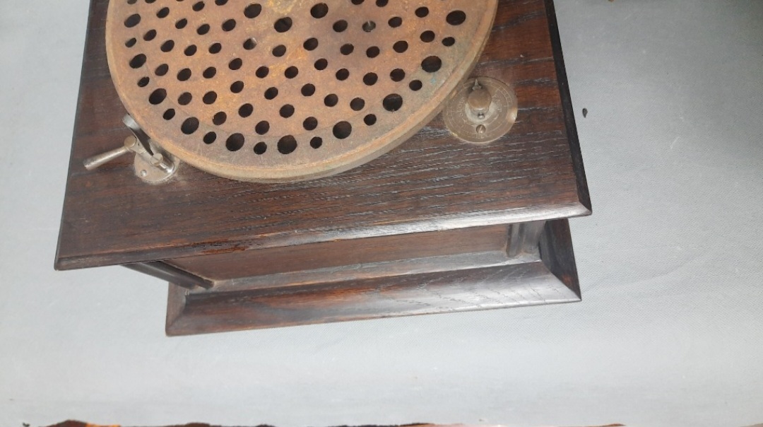 I looked closely at the photos, and noticed that the patina under the front panel didn't quite seem to match the other sides. Also, the glue blocks in front are different from those in back: this may indicate a conversion from a 'hornless' model.Sidewinder wrote: Sun Jul 06, 2025 3:57 am At first glance I thought it was a converted tabletop as one sees here at the 3rs set of pictures - the HMV tabletop conversion