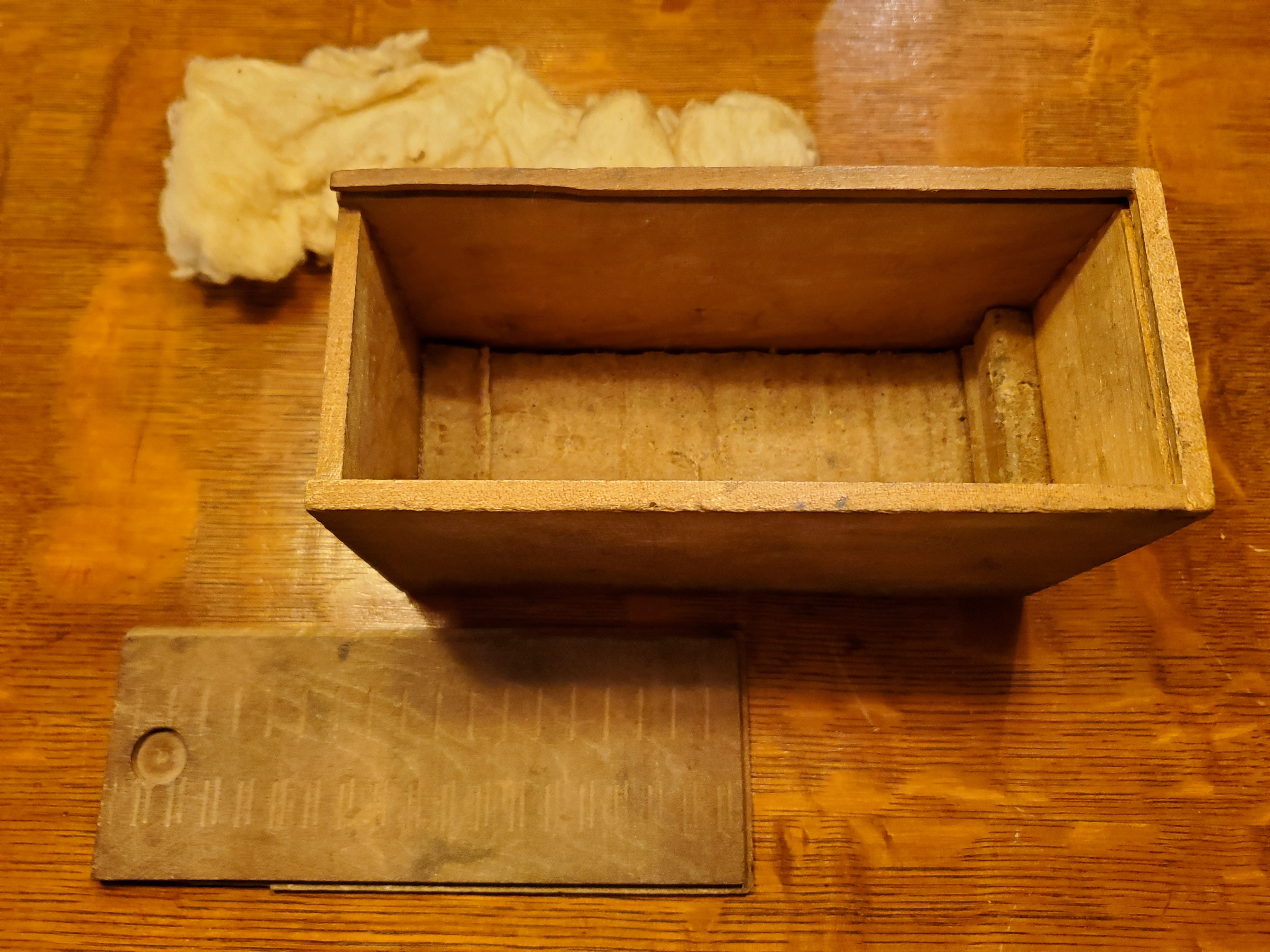 I found a Model O Reproducer in this box, although the box was clearly designed to contain the Triumph carrier arm as well. The box has lost its labels, but its construction and padding at the bottom leaves little doubt as to its origin.