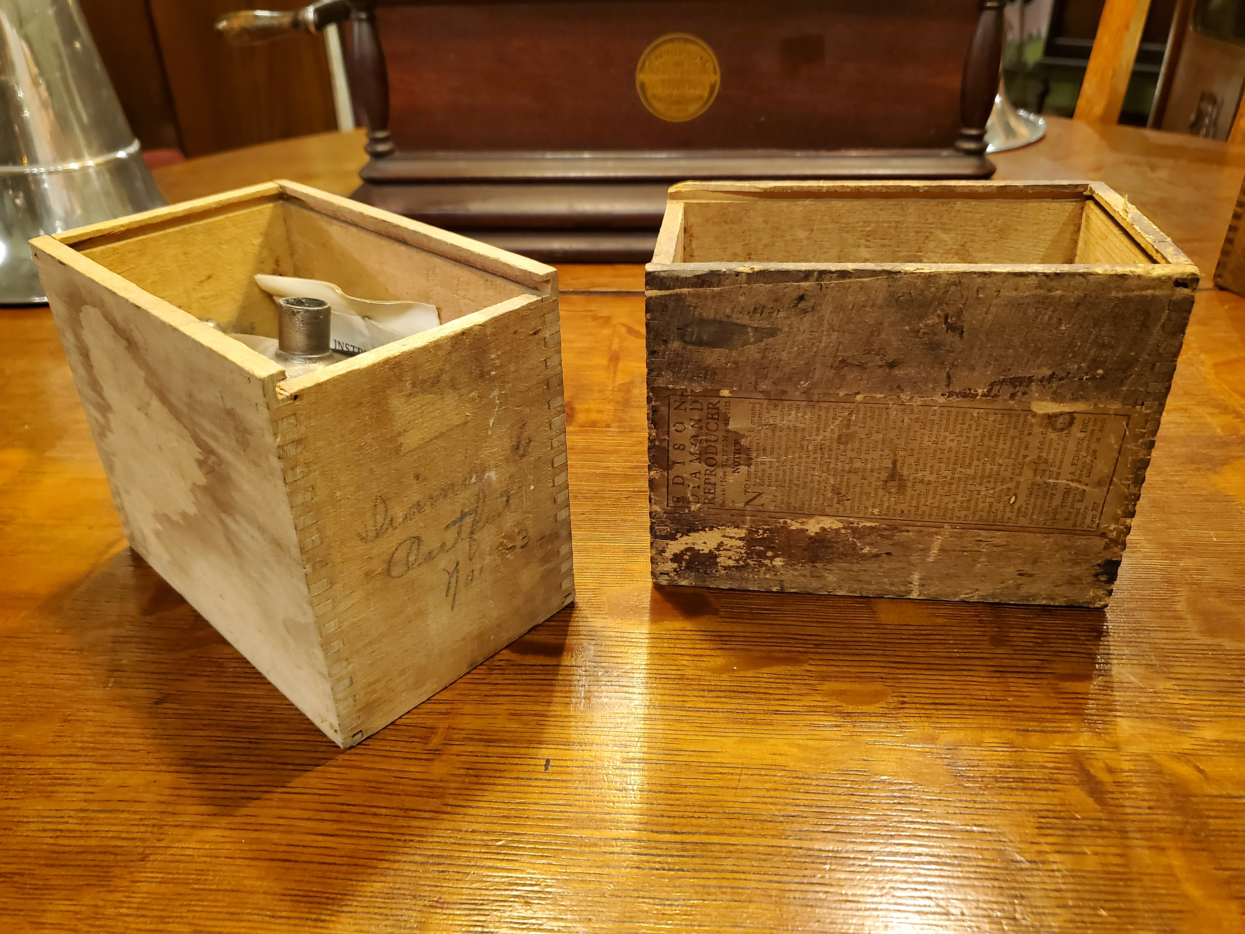 These Edison boxes retain their paper labels and pencil markings ("Diamond Outfit No.3").